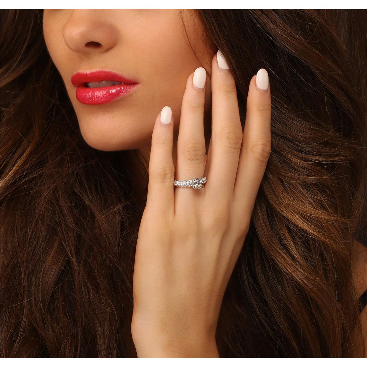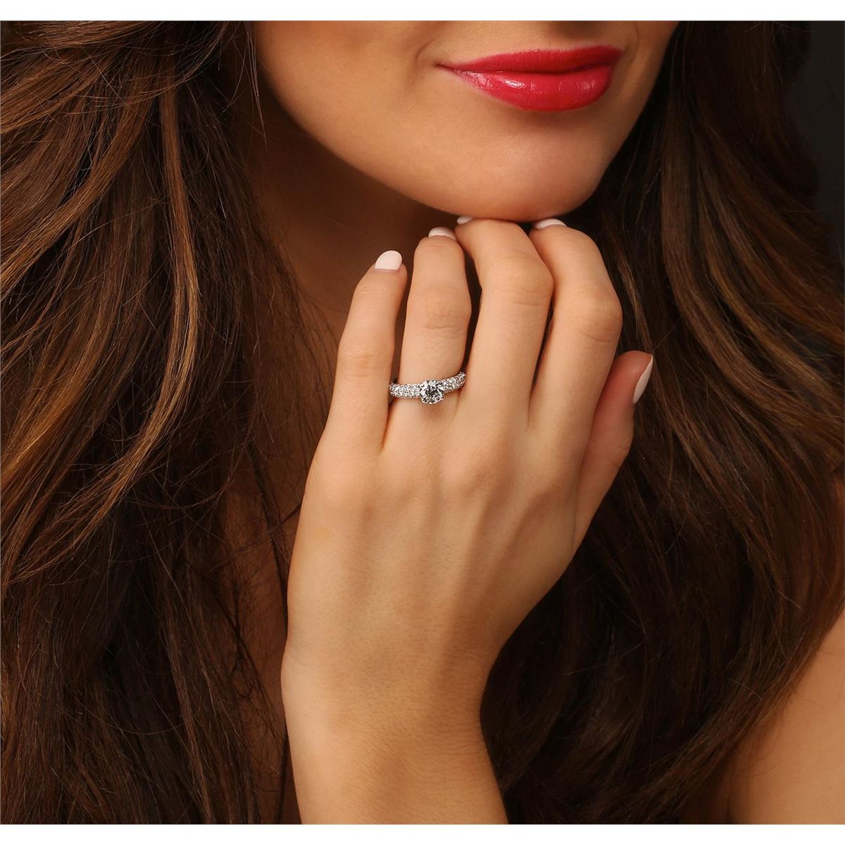 One electronically tested 14KT white gold ladies cast diamond unity ring. Condition is good. The featured diamond is set within a diamond set under gallery supported by a continuous three millimeter wide eternity band. Bright polish finish with milgrain detailing. Identified with markings of "14K". Containing: One prong set round brilliant cut diamond, measuring 6.25 - 6.20 x 4.00mm (depth est.) approximate weight of 1.04ct. Graded in the setting. Clarity: I-2. Color: J Depth 64.2%. Table 56.2%. One Hundred Five pave‚ set round brilliant cut diamonds, measuring 1.80 - 1.70 x 1.05mm (depth est.) approximate. Total Weight of 105 Stones = 2.15ct. Graded in the setting. Clarity: VS-1 to VS-2. Color: G - I Four bead set round brilliant cut diamonds, measuring 1.10 - 1.00 x 0.63mm (depth est.) approximate. Total Weight of 4 Stones = 0.06ct. Graded in the setting. Clarity: VS-2 to SI-1. Color: H - I. Total Weight of Diamonds 3.25ct. Total Weight of Ring 3.62 grams. AIG Appraised at $16,960.00.