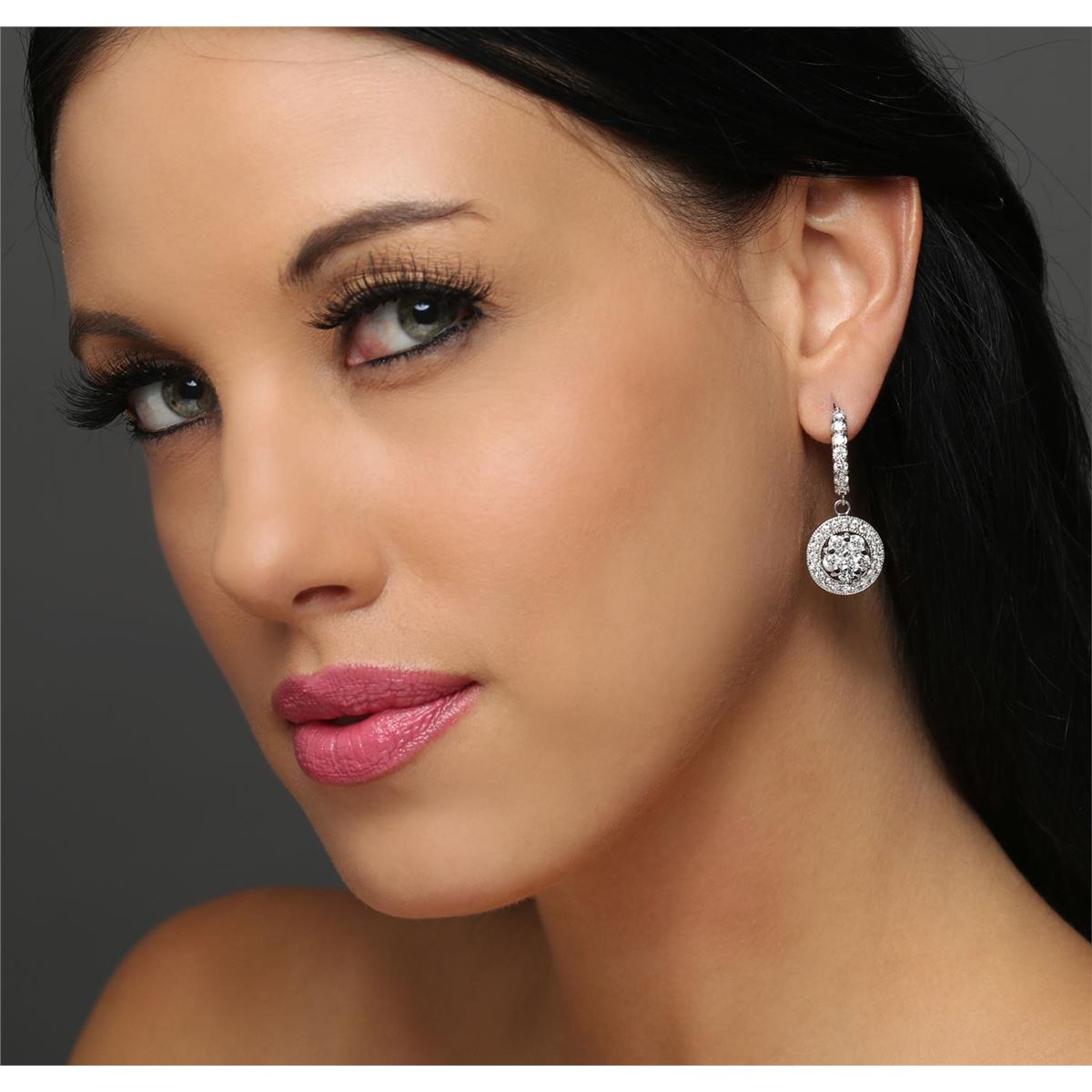 One pair electronically tested 14KT white gold Ladies combination cast & assembled earrings with hinged clip backs with a bright polish finish. Condition is new. Identified with markings of "14K". Containing: Fourteen prong set round brilliant cut diamonds, measuring 3.20 - 3.20 x 1.92mm (depth est.) approximate. Total Weight of 14 Stones = 1.68ct. Clarity: SI-1 to I-2. Color: J - K, Cut is Good. Fifty-Four prong set round brilliant cut diamonds, measuring 2.50 - 1.50 x 1.20mm (depth est.) approximate. Total Weight of 54 Stones = 1.58ct. Clarity: I-1 to I-2. Color: I - J, Cut is Good. All grading of diamonds and colored gemstones in this piece of jewelry are graded in the mounting, unless otherwise stated. Total Weight of Diamonds 3.26ct. Total Weight of Earrings 12.30 grams. GGL Appraised at $9,870.00.