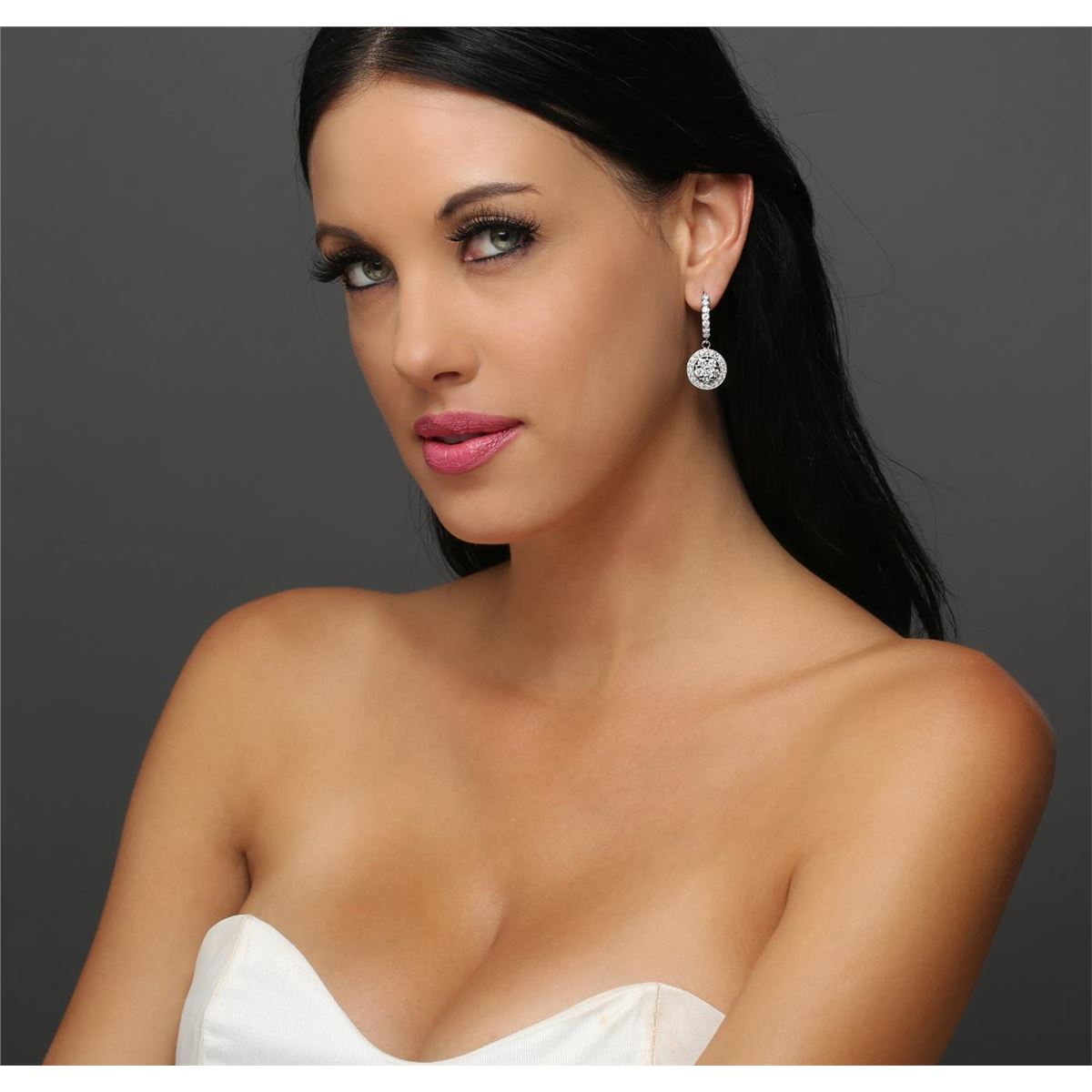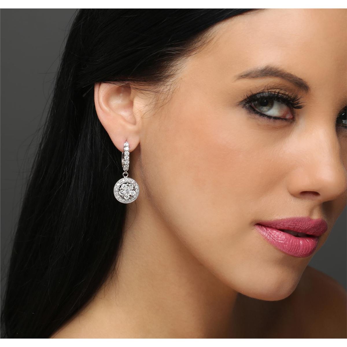 One pair electronically tested 14KT white gold Ladies combination cast & assembled earrings with hinged clip backs with a bright polish finish. Condition is new. Identified with markings of "14K". Containing: Fourteen prong set round brilliant cut diamonds, measuring 3.20 - 3.20 x 1.92mm (depth est.) approximate. Total Weight of 14 Stones = 1.68ct. Clarity: SI-1 to I-2. Color: J - K, Cut is Good. Fifty-Four prong set round brilliant cut diamonds, measuring 2.50 - 1.50 x 1.20mm (depth est.) approximate. Total Weight of 54 Stones = 1.58ct. Clarity: I-1 to I-2. Color: I - J, Cut is Good. All grading of diamonds and colored gemstones in this piece of jewelry are graded in the mounting, unless otherwise stated. Total Weight of Diamonds 3.26ct. Total Weight of Earrings 12.30 grams. GGL Appraised at $9,870.00.
