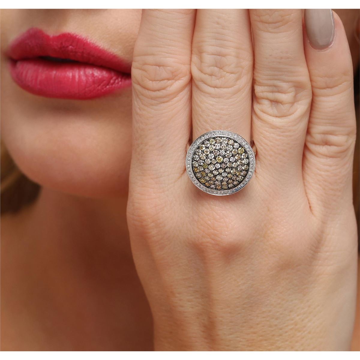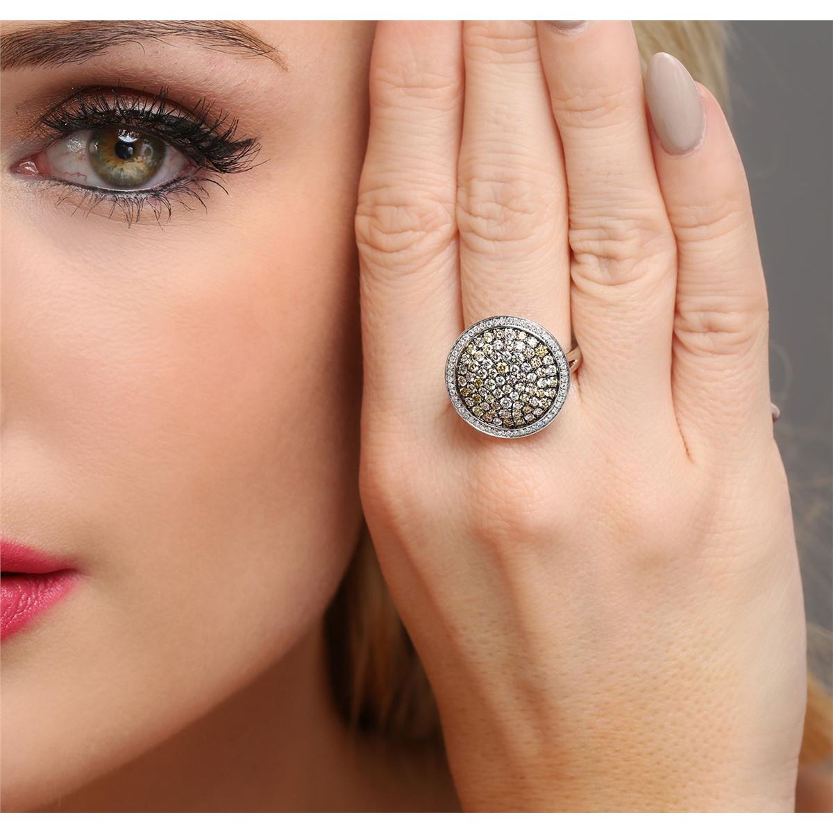 One electronically tested 14KT white gold ladies combination cast & assembled diamond ring with a bright polish finish. Identified with markings of "14K". Condition is new. Containing: Fifty-Three prong set single cut diamonds, measuring 1.30 - 1.00 x 0.69mm (depth est.) approximate total weight of 53 Stones = 0.29ct. Clarity: SI-1 to SI-2. Color: H - I, Cut is Good. Seventy-Four prong set round brilliant cut diamonds, measuring 1.60 - 1.30 x 0.87mm (depth est.) approximate total weight of 74 Stones = 3.03ct. Clarity: SI-2 to I-1, Cut is Good. All diamonds are graded in the mounting, unless otherwise stated. Total Weight of Diamonds 3.33ct. Total Weight of Ring 6.50 grams. GGL Appraised at $5,180.00.