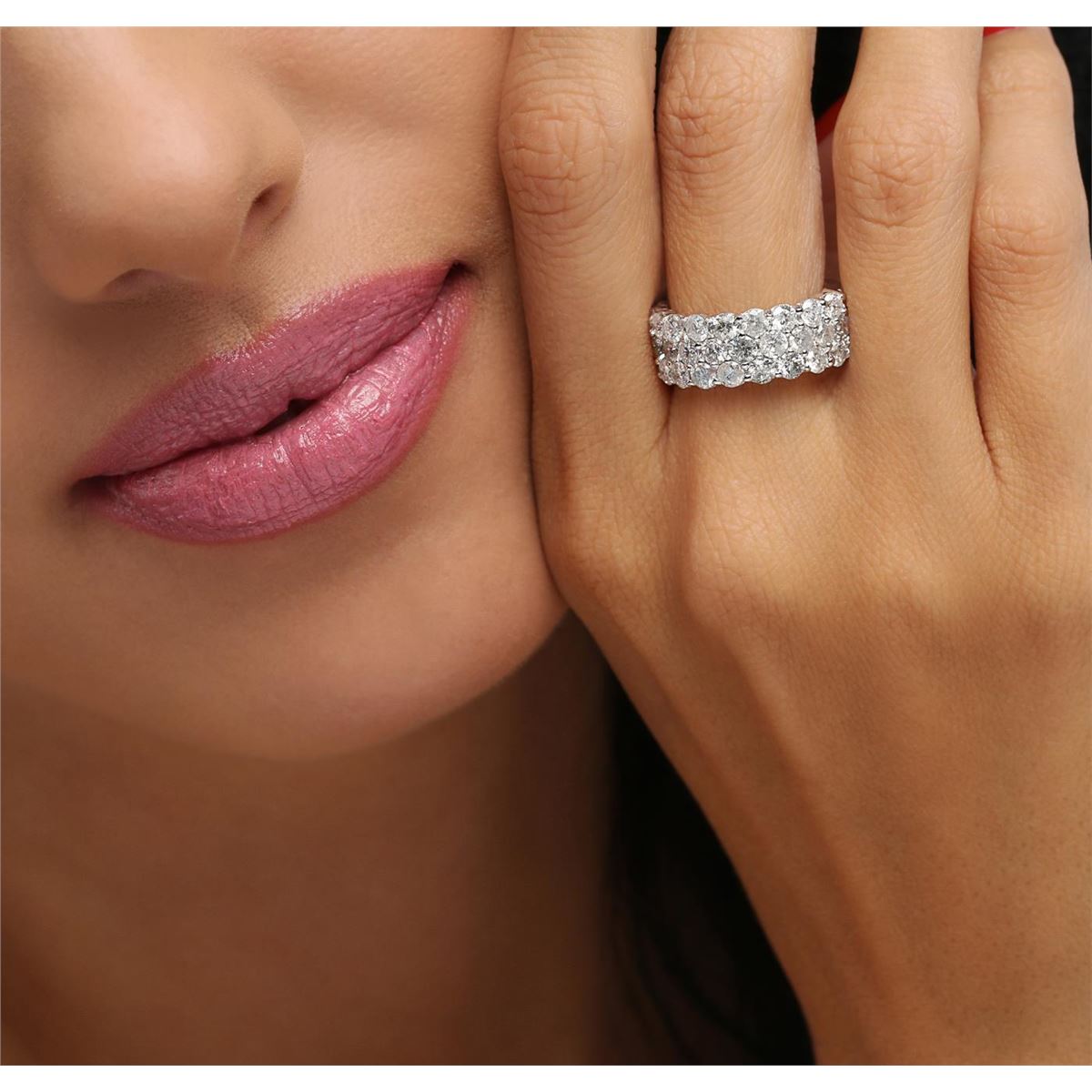 One electronically tested 14KT white gold ladies combination cast & assembled diamond ring with a bright polish finish. Identified with markings of "14K". Condition is new. Containing: Thirty-Four prong set round brilliant cut diamonds, measuring 3.00 - 3.00 x 1.80mm (depth est.) approximate total weight of 34 Stones = 3.36ct. Clarity: I-1 to I-2. Color: I - J, Cut is Good. All diamonds are graded in the mounting, unless otherwise stated. Total Weight of Diamonds 3.36ct. Total Weight of Ring 9.30 grams. GGL Appraised at $7,235.00.