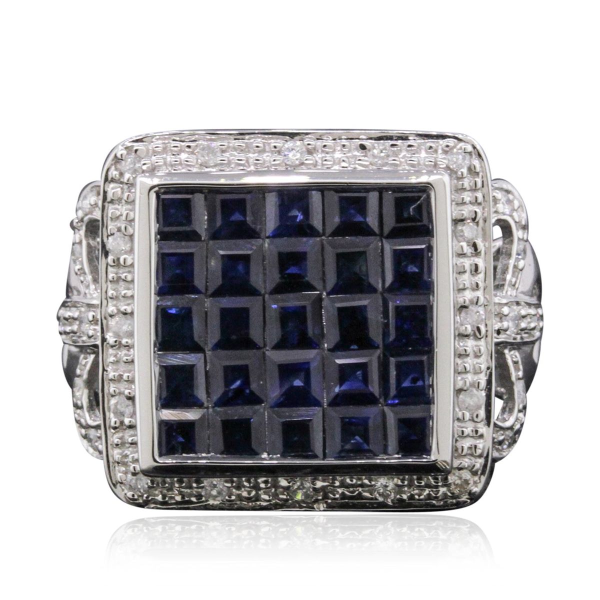 One ring featuring: 14KT white gold weighing 5.17 grams containing 25 blue sapphires with a total weight of 3.37cts and 28 round cut diamonds with a total weight of 0.19cts.