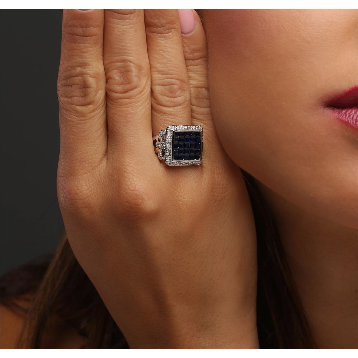 One ring featuring: 14KT white gold weighing 5.17 grams containing 25 blue sapphires with a total weight of 3.37cts and 28 round cut diamonds with a total weight of 0.19cts.