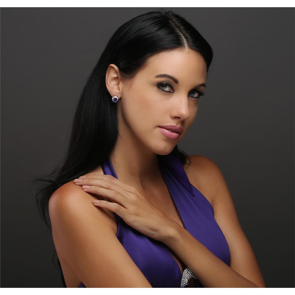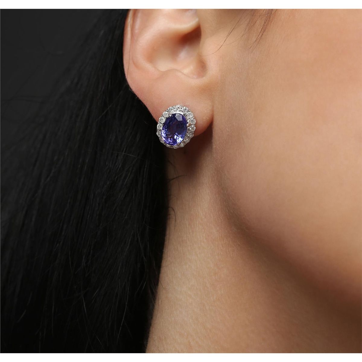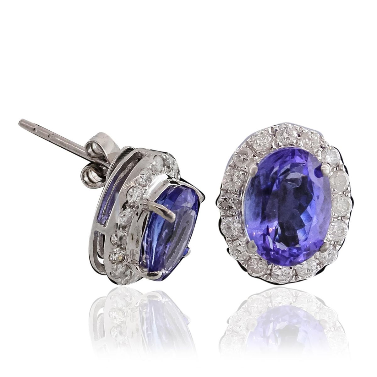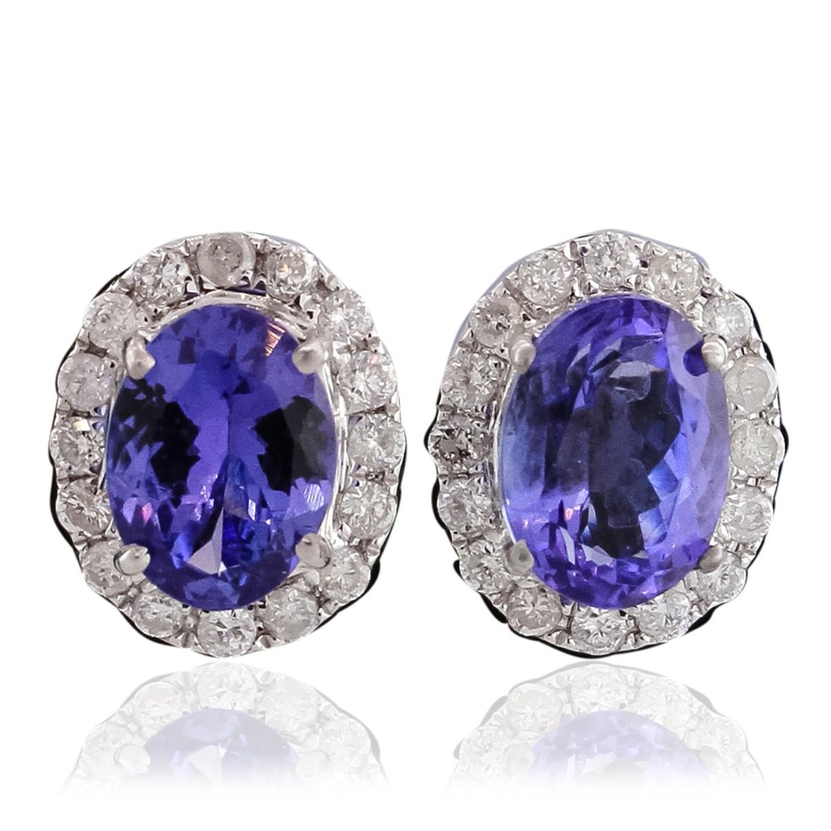 One pair electronically tested 14KT white gold ladies cast & assembled tanzanite & diamond earrings with standard backs. Each earing features a tanzanite set within a diamond bezel. Trademark is Orianne. Identified with markings of "14K". Condition is good. Containing: Two prong set oval mixed cut natural tanzanites, measuring 9.00 x 6.50 x 4.00mm, 5% bulge factor, approximate total weight of 3.38ct., clarity is eye clean, type I, medium dark, very slightly grayish, bluish violet color, (GIA bV 6/3), cut is good. Measurements are an average for the pair. Transmitting light with no distortion, transparent. Graded in the setting. Tanzanite is a very rare gemstone that is only found in the country of Tanzania. Originally discovered in 1967. Tiffany & Company, named the stone Tanzanite. It is found in the Usumburu Mountains that border the Umba Valley of northern Tanzania. Tanzanite occurs in gray, brown, violet, blue, reddish-purple, & green. The gem is interesting because of its exceptional pleochroism. Rotated in different directions a tanzanite will exhibit multiple changes of color. Tanzanite has a low tolerance to ultrasonic cleaning, and should not be cleaned using this method. Thirty-Two prong set round brilliant cut diamonds, measuring 1.70 - 1.60 x 1.01mm (depth est.) approximate total weight of 32 Stones = 0.55ct. Graded in the setting. Clarity: I-1 to I-3. Color: H - I. Total Weight of Colored Stones 3.38ct. Total Weight of Diamonds 0.55ct. Total Weight of Earrings 3.90gm. AIG Appraised at $8,300.00.