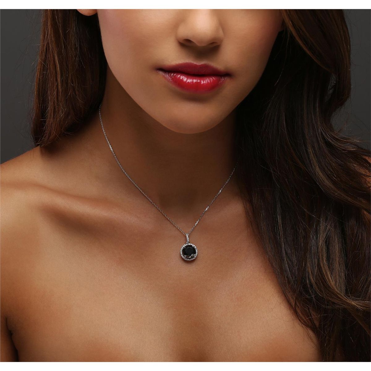 One pendant with chain featuring: 14KT white gold with a total weight of 2.80 grams, black diamond with a total weight of 3.48ct, and diamonds with a total weight of 0.27ctw.