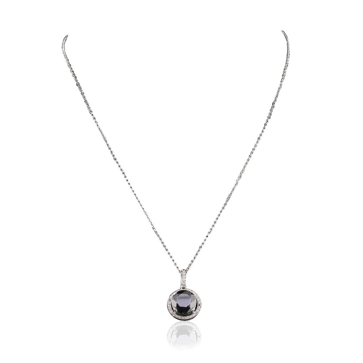 One pendant with chain featuring: 14KT white gold with a total weight of 2.80 grams, black diamond with a total weight of 3.48ct, and diamonds with a total weight of 0.27ctw.
