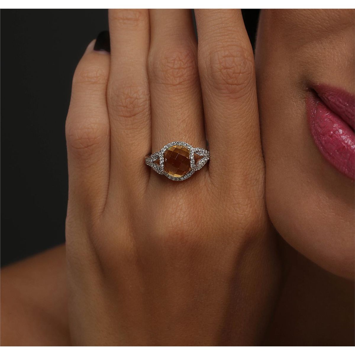 One ring featuring: 14KT white gold with a total weight of 4.60 grams, citrine with a total weight of 3.55ct, and diamonds with a total weight of 0.44ctw.