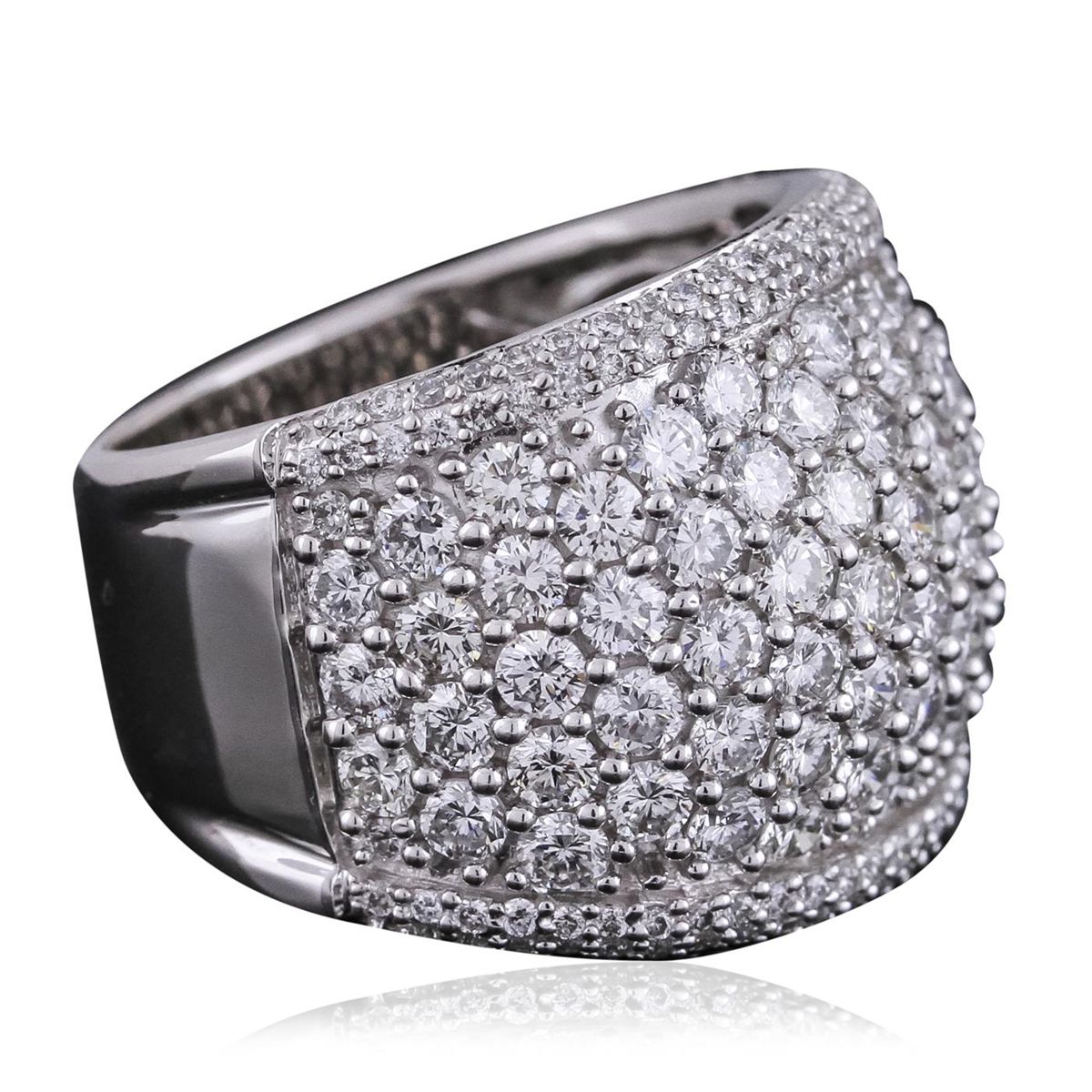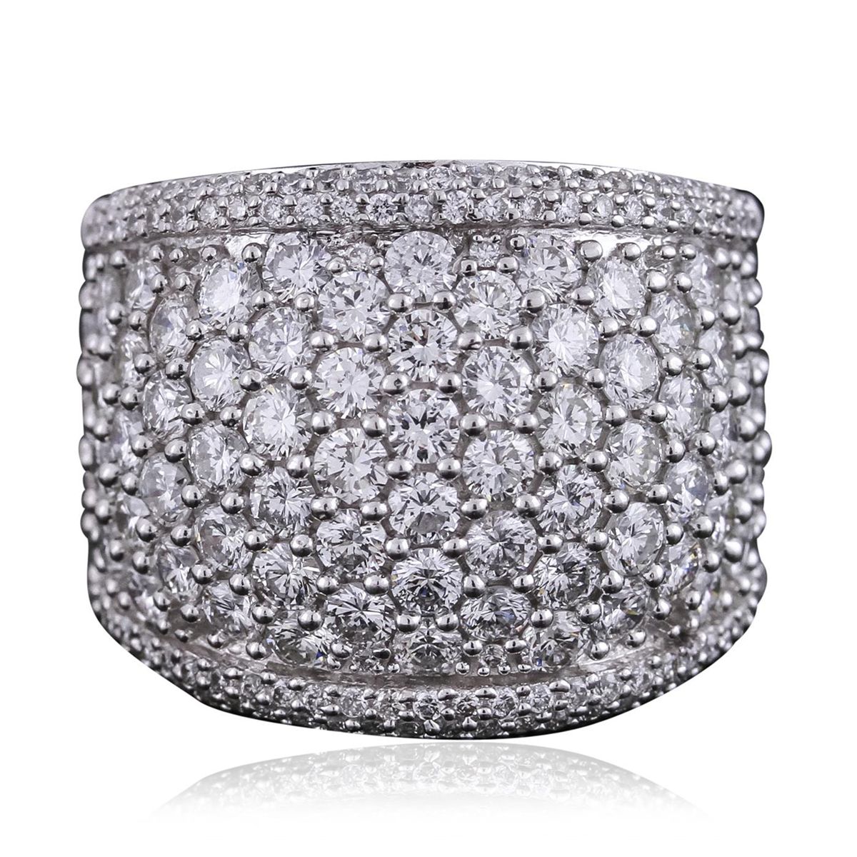 One electronically tested 14KT white gold ladies combination cast & assembled ring with a bright polish finish. Identified with markings of "14K". Condition is new. Containing: Seventy prong set round brilliant cut diamonds, measuring 2.30 - 2.30 x 1.38mm (depth est.) approximate total weight of 70 Stones = 3.12ct. Clarity: SI-1 to SI-2. Color: J, Cut is Good. One Hundred Twelve prong set round brilliant cut diamonds, measuring 1.10 - 1.10 x 0.66mm (depth est.) approximate total weight of 112 Stones = 0.54ct. Clarity: I-1 to I-2. Color: H - I, Cut is Good. All diamonds are graded in the mounting, unless otherwise stated. Total Weight of Diamonds 3.65ct. Total Weight of Ring 11.00 grams. GGL Appraised at $16,415.00.