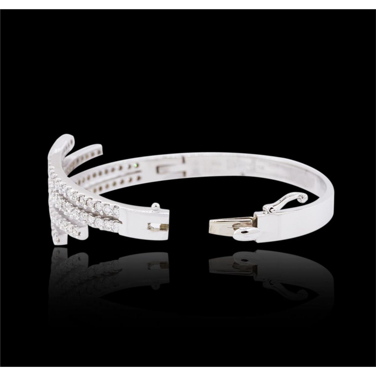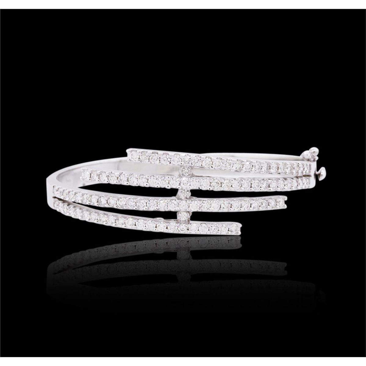 One electronically tested 14KT white gold ladies cast diamond bracelet with a hidden box clasp with safety closer with a bright polish finish. The bracelet measures 7-1/4" long. Identified with markings of "14K". Condition is new. Containing: Ninety-Four prong set round brilliant cut diamonds, measuring 2.20 - 2.20 x 1.32mm (depth est.) approximate total weight of 94 Stones = 3.66ct. Clarity: SI-2 to I-1. Color: J - K, Cut is Good. All diamonds are graded in the mounting, unless otherwise stated. Total Weight of Diamonds 3.66ct. Total Weight of Bracelet 31.20 grams. GGL Appraised at $16,385.00.