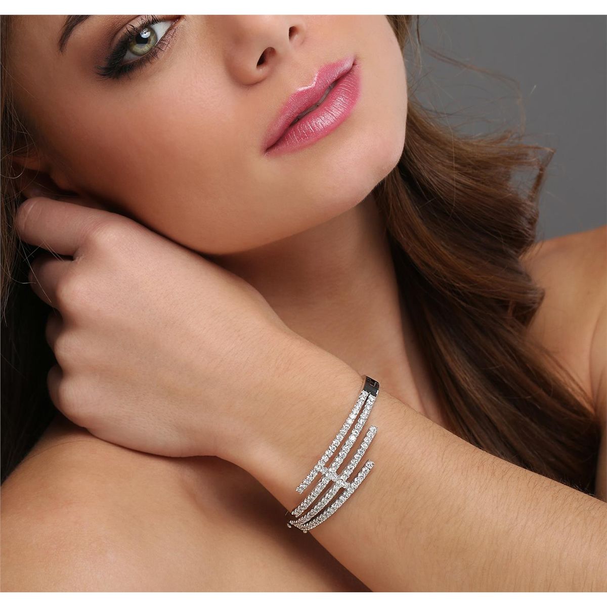 One electronically tested 14KT white gold ladies cast diamond bracelet with a hidden box clasp with safety closer with a bright polish finish. The bracelet measures 7-1/4" long. Identified with markings of "14K". Condition is new. Containing: Ninety-Four prong set round brilliant cut diamonds, measuring 2.20 - 2.20 x 1.32mm (depth est.) approximate total weight of 94 Stones = 3.66ct. Clarity: SI-2 to I-1. Color: J - K, Cut is Good. All diamonds are graded in the mounting, unless otherwise stated. Total Weight of Diamonds 3.66ct. Total Weight of Bracelet 31.20 grams. GGL Appraised at $16,385.00.