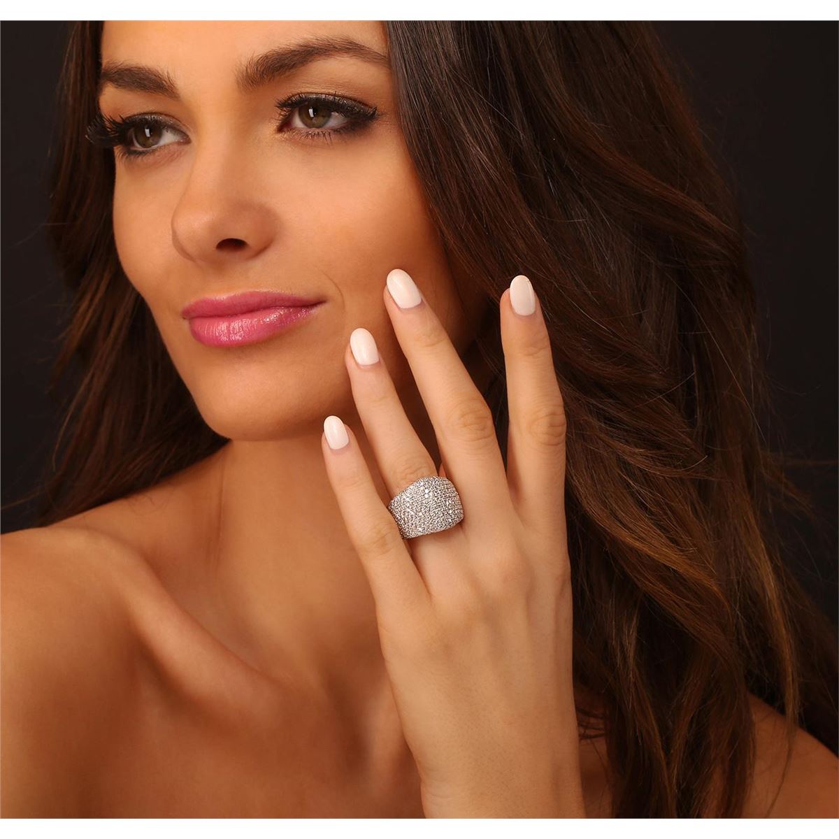 One electronically tested 14KT white gold Ladies combination cast & assembled fashion ring with a bright polish finish. Identified with markings of "14K". Condition is new. Containing: Two Hundred Ninety-Nine bead set round brilliant cut diamonds, measuring 1.60 - 1.40 x 0.90mm (depth est.) approximate total weight of 299 Stones = 3.68ct. Clarity of SI-1 to SI-2, Color of G - I, Cut is Very Good. Total Weight of Diamonds 3.68ct. Total Weight of Ring 13.00gm. GGL Appraised at $16,020.00.