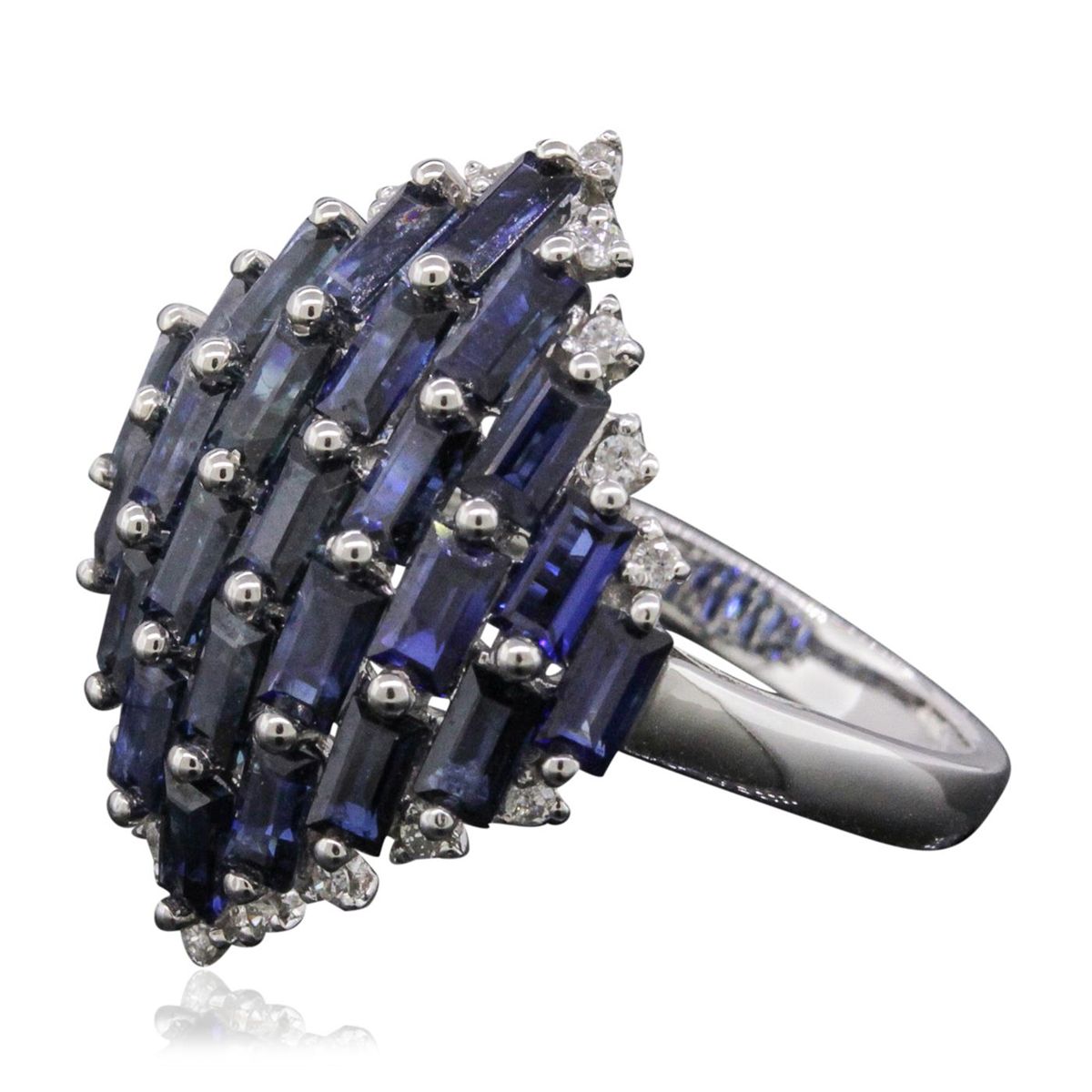 One ring featuring: 14KT white gold weighing 3.15 grams containing 25 blue sapphires with a total weight of 3.69cts and 18 round cut diamonds with a total weight of 0.13cts.