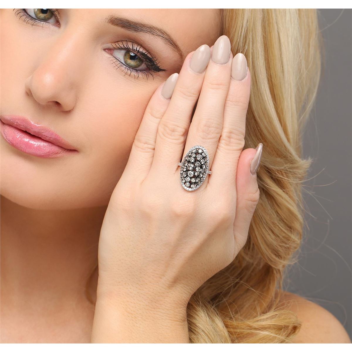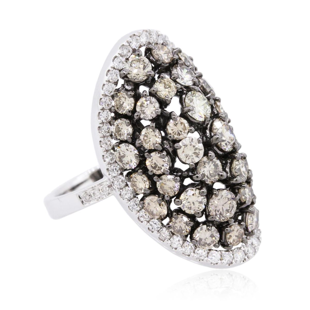 One electronically tested 14KT white gold ladies cast diamond ring with a bright polish finish. Identified with markings of "14K". Condition is new. Containing: Fifty-Two prong set round brilliant cut diamonds, measuring 1.20 - 1.20 x 0.72mm (depth est.) approximate total weight of 52 Stones = 0.33ct. Clarity: SI-2 to I-1. Color: I - J, Cut is Good. Thirty-Five prong set round brilliant cut diamonds, measuring 3.50 - 2.50 x 1.80mm (depth est.) approximate total weight of 35 Stones = 3.46ct. Clarity: SI-1, Cut is Good. All diamonds are graded in the mounting, unless otherwise stated. Total Weight of Diamonds 3.79ct. Total Weight of Ring 7.50 grams. GGL Appraised at $7,660.00.