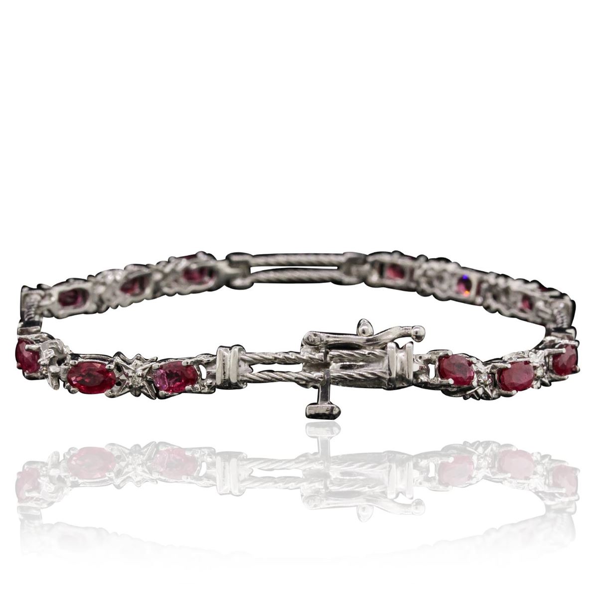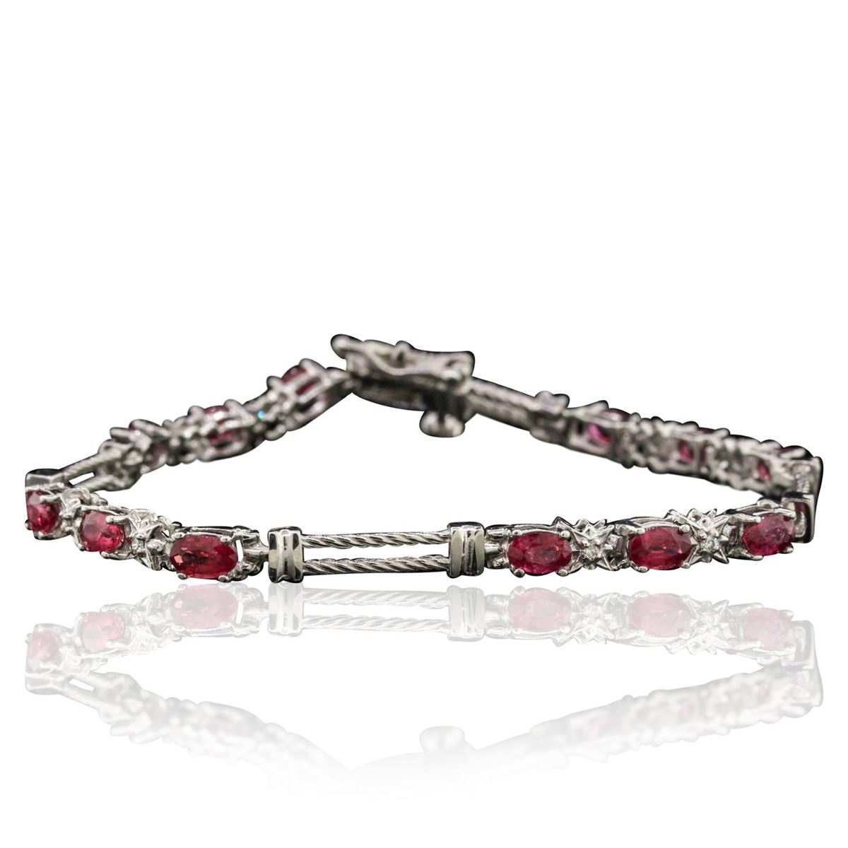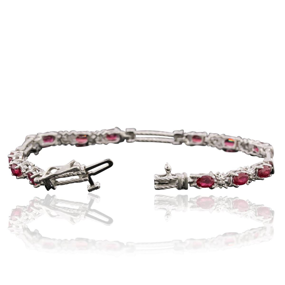 One bracelet featuring: 14KT white gold with a total weight of 8.90 grams, ruby with a total weight of 3.82ctw, and diamonds with a total weight of 0.10ctw.