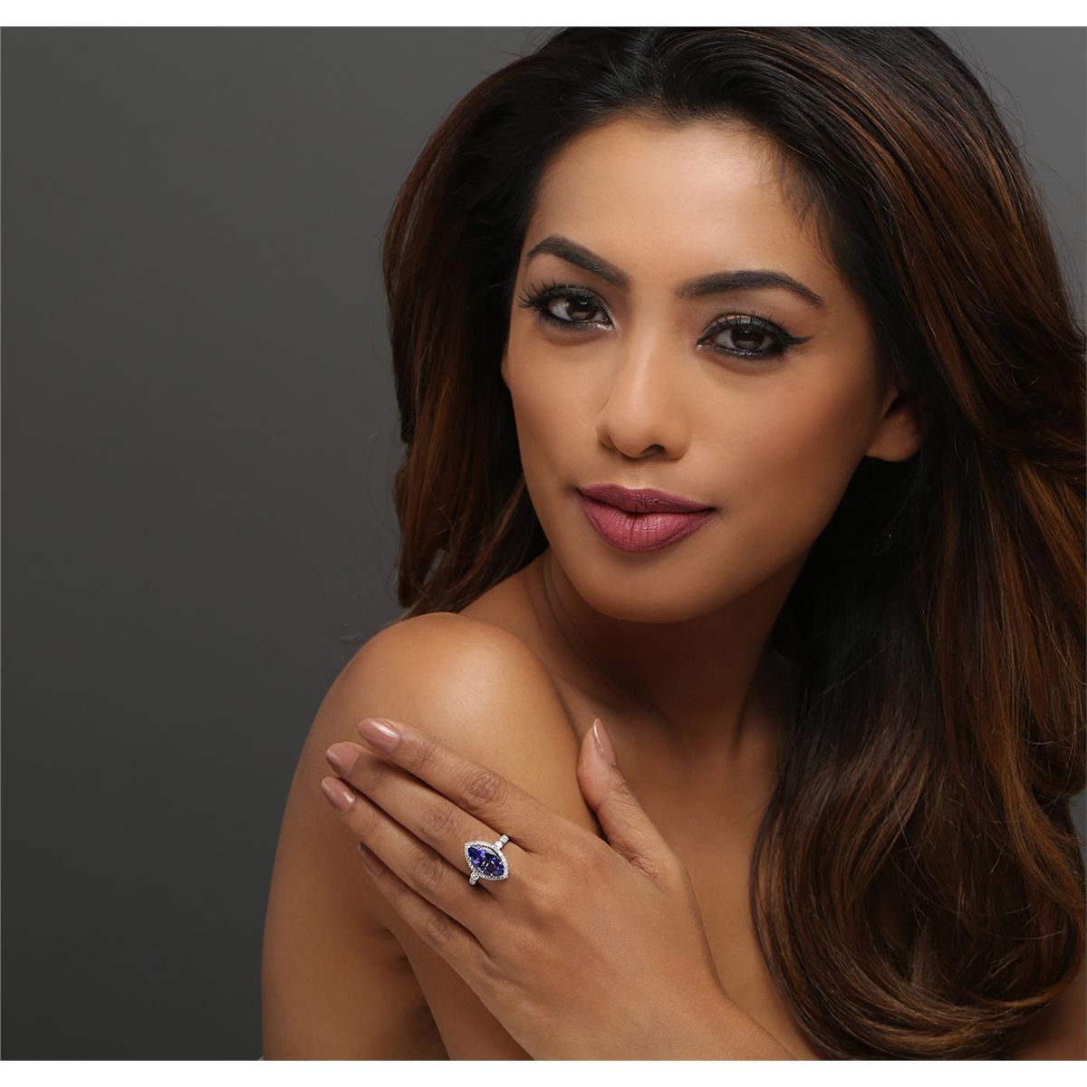 One electronically tested 14KT white gold Ladies cast ring with a bright polish finish. Condition is new. Identified with markings of "14K". Containing: One prong set marquise modified brilliant cut natural tanzanite, measuring 14.70 x 7.70 x 5.30mm, approximate weight of 3.82ct., clarity is eye clean, type I, medium light, very slightly grayish, bluish violet color, (GIA bV 4/3), cut is very good. Colored gemstones are presumed to have been subjected to commonly used color/clarity enhancement processes. Two prong set round brilliant cut diamonds, measuring 2.80 - 2.80 x 1.68mm (depth est.) approximate. Total Weight of 2 Stones = 0.16ct. Clarity: I-2 to I-3. Color: H - I, Cut is Good. All grading of diamonds and colored gemstones in this piece of jewelry are graded in the mounting, unless otherwise stated. Total Weight of Colored Stones 3.82ct. Total Weight of Diamonds 0.16ct. Total Weight of Ring 3.30 grams. GGL Appraised at $6,390.00.