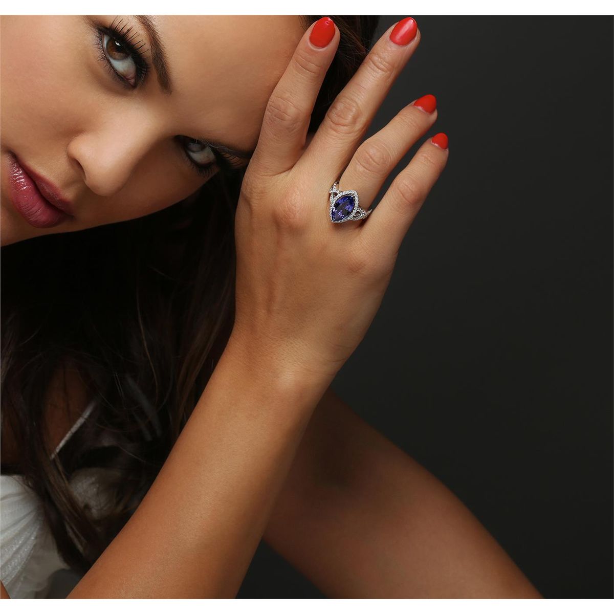 One electronically tested 14KT white gold Ladies cast ring with a bright polish finish. Condition is new. Identified with markings of "14K". Containing: One prong set marquise modified brilliant cut natural tanzanite, measuring 15.00 x 7.90 x 5.14mm, approximate weight of 3.88ct., clarity is eye clean, type I, medium, moderately strong, violet color, (GIA V 5/4), cut is good. Colored gemstones are presumed to have been subjected to commonly used color/clarity enhancement processes. Fifty-Nine prong set round brilliant cut diamonds, measuring 1.30 - 1.30 x 0.78mm (depth est.) approximate. Total Weight of 59 Stones = 0.47ct. Clarity: I-1 to I-3. Color: I - J, Cut is Good. All grading of diamonds and colored gemstones in this piece of jewelry are graded in the mounting, unless otherwise stated. Total Weight of Colored Stones 3.88ct. Total Weight of Diamonds 0.47ct. Total Weight of Ring 6.30 grams. GGL Appraised at $8,480.00.