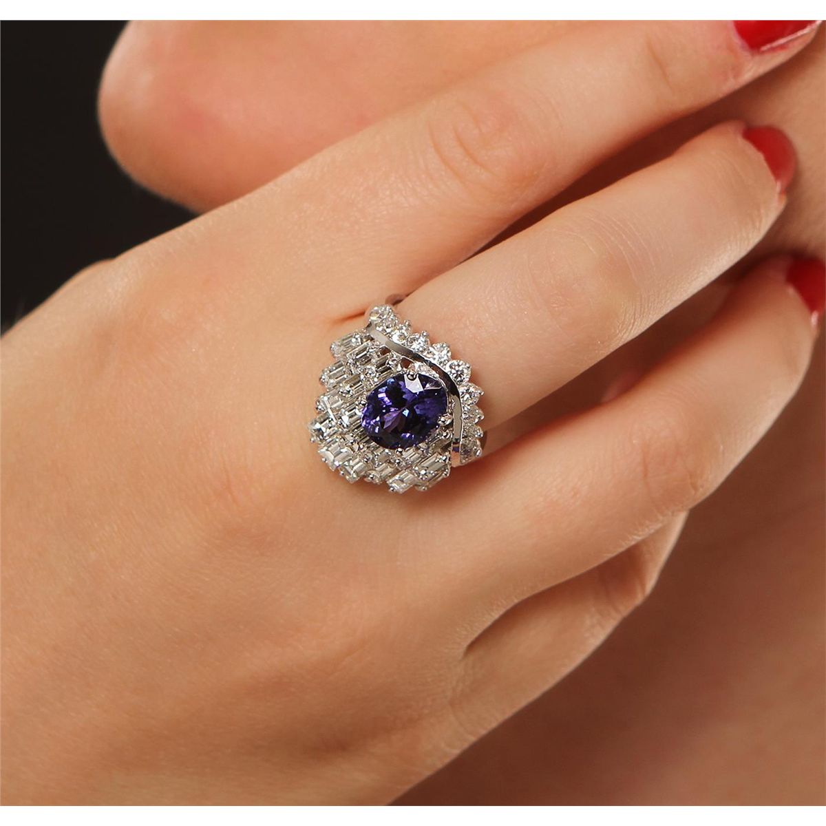 One polished, stamped, and electronically tested solid 14KT White Gold ring mounted with: 1 genuine tanzanite center stone weighing 4.00 carats, 18 genuine baguette cut diamonds weighing 3.08 carats, and 11 genuine round diamonds weighing 0.94 carats. This item weighs 9.6 grams, condition is new, excellent workmanship. AIGL Appraised at $20,930.00.