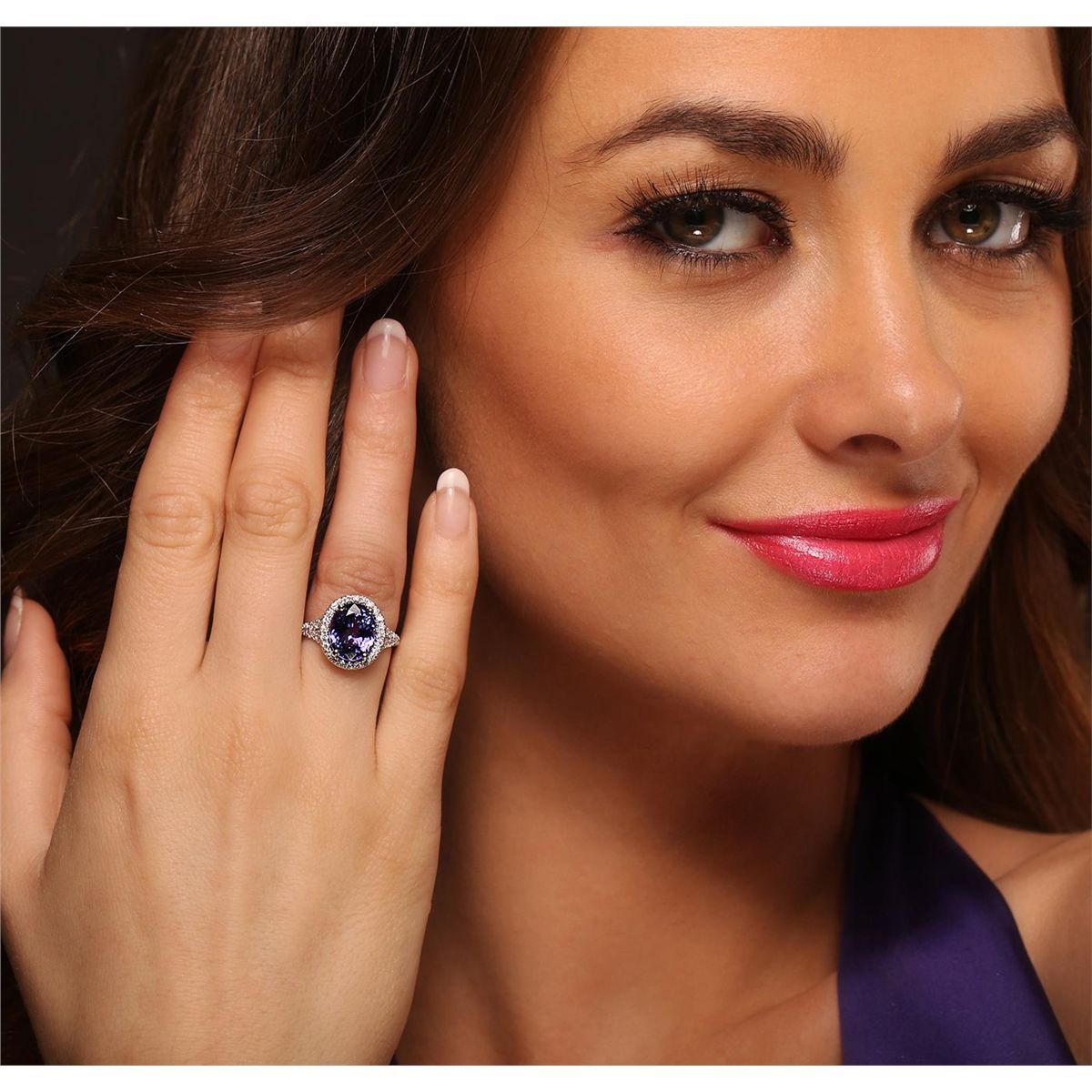 One electronically tested 14KT white gold Ladies combination cast & assembled fashion ring with a bright polish finish. Condition is new. Identified with markings of "14K". Containing: One prong set oval modified brilliant cut natural tanzanite, measuring 11.00 x 9.10 x 5.70mm, approximate weight of 4.03ct., clarity is eye clean, type I, medium, moderately strong, violetish blue color, (GIA vB 5/4), cut is very good. Forty-Eight bead set round brilliant cut diamonds, measuring 1.50 - 1.50 x 0.90mm (depth est.) approximate total weight of 48 Stones = 0.55ct. Clarity of SI-2 to I-1, Color of I - J, Cut is Very Good. Total Weight of Colored Stones 4.03ct. Total Weight of Diamonds 0.55ct. Total Weight of Ring 4.50gm. GGL Appraised at $8,450.00.