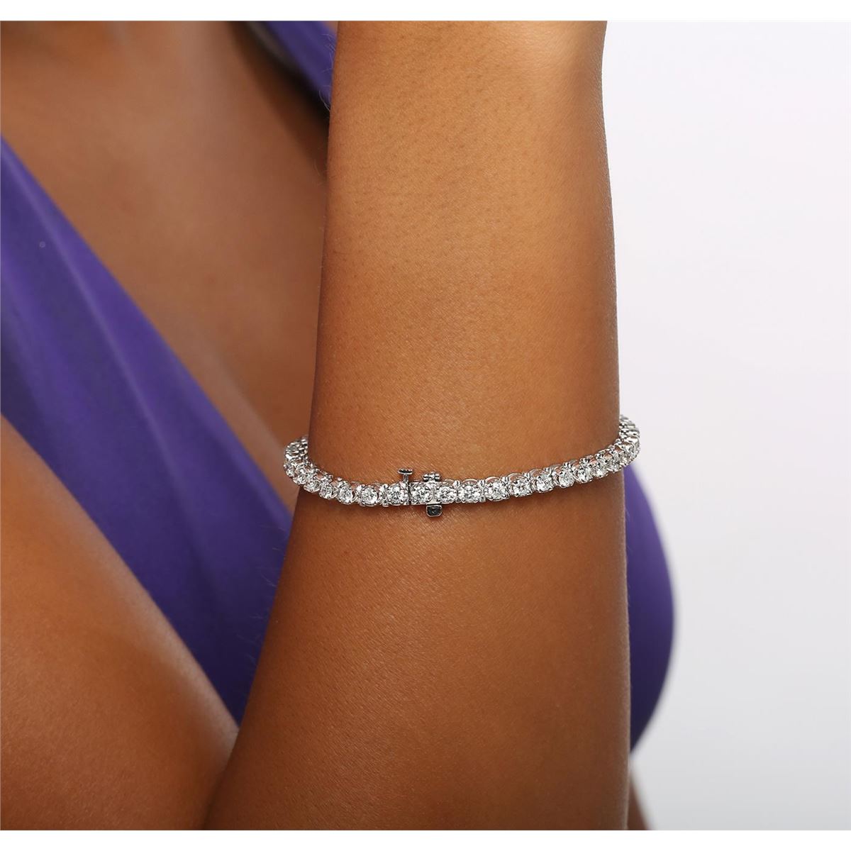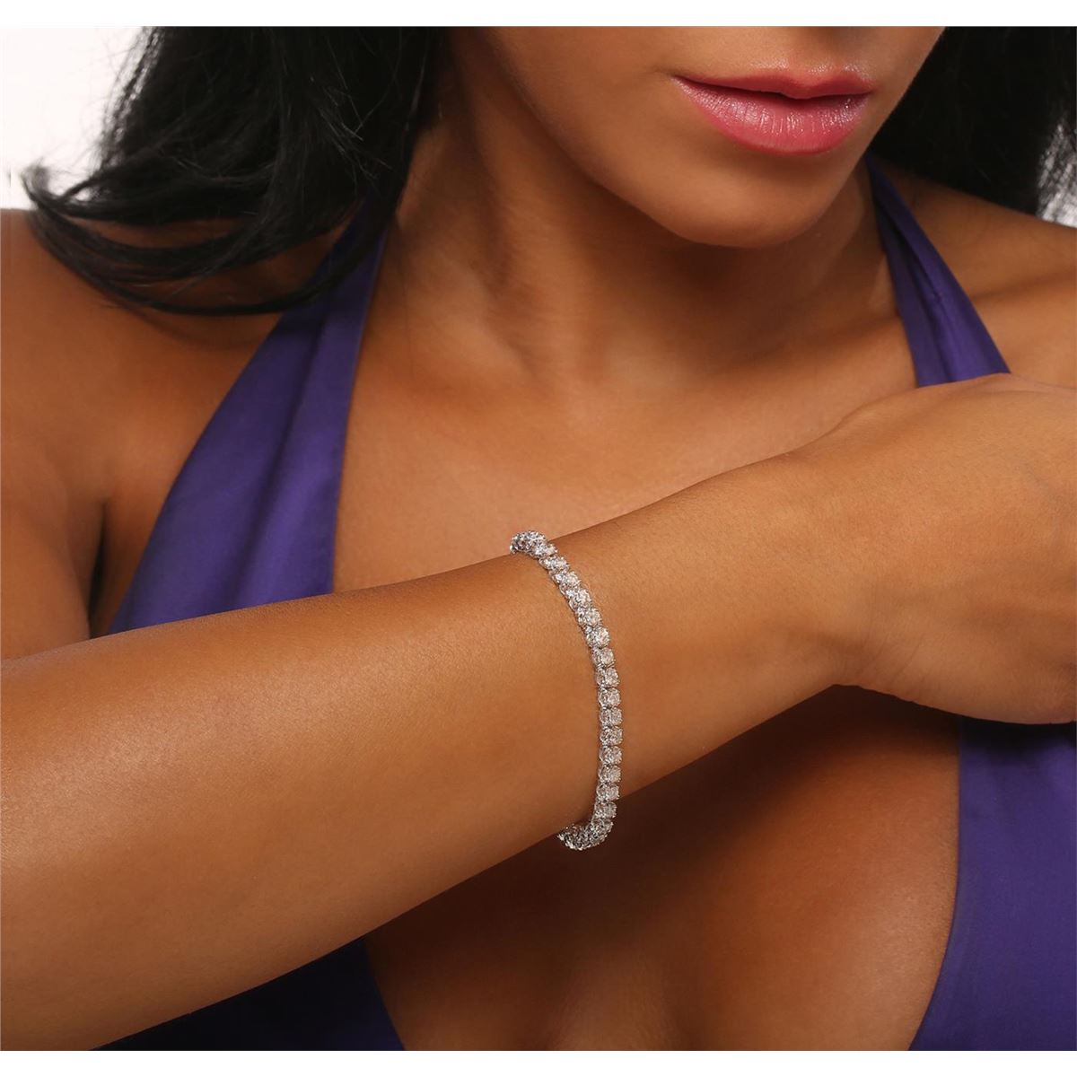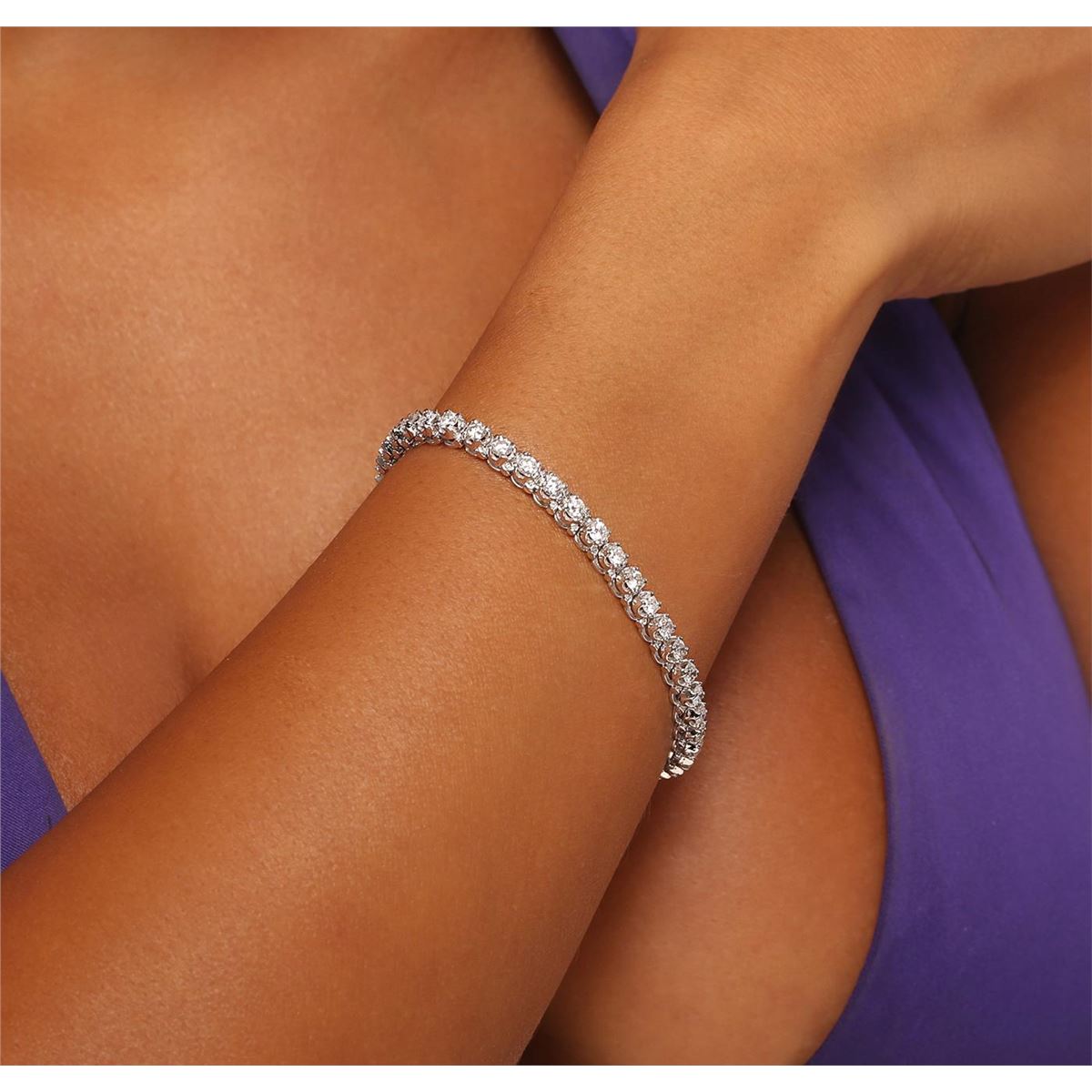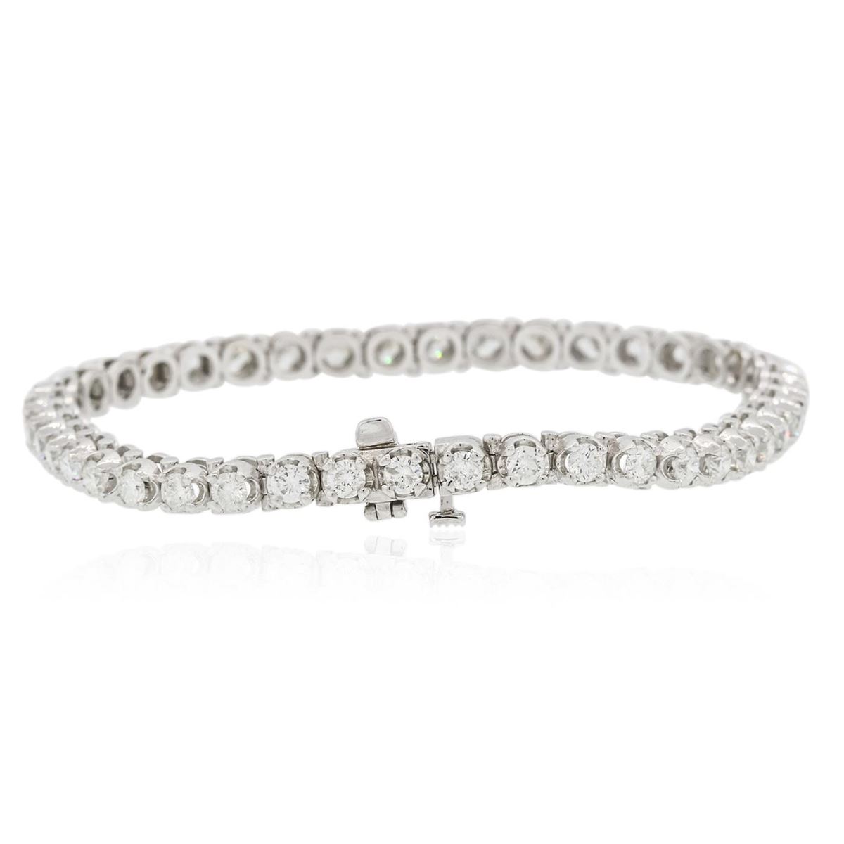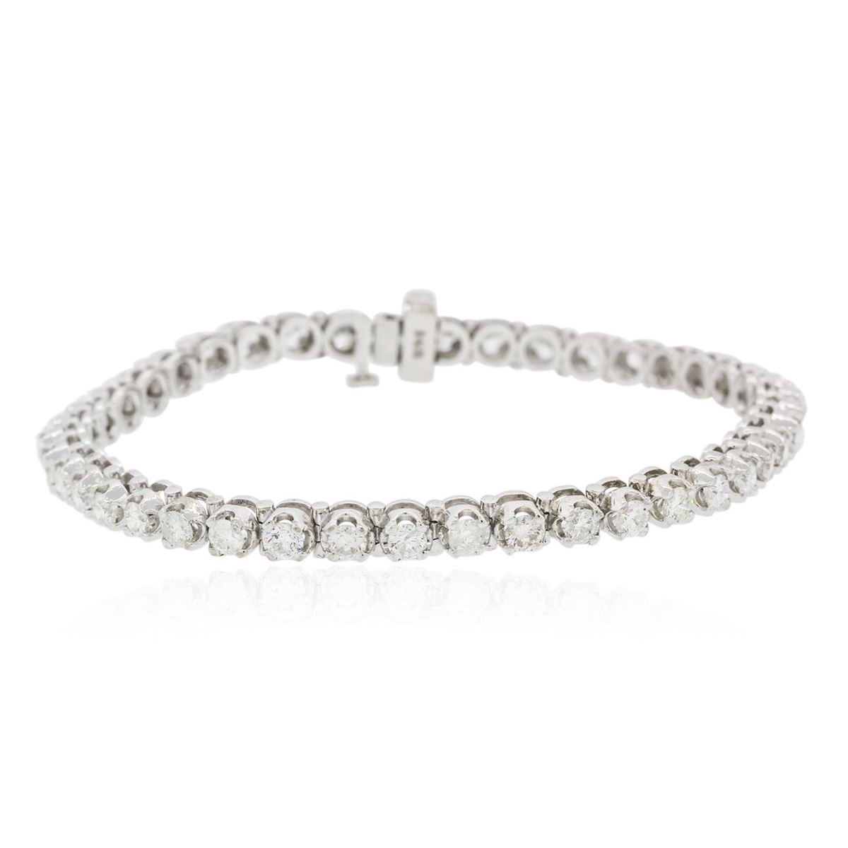 One electronically tested 14KT white gold ladies combination cast & assembled tennis bracelet with a hidden box clasp with a bright polish finish. Condition is new. Measurements: 7" in length. Identified with markings of "14K". Containing: Forty-Two prong set round brilliant cut diamonds, measuring 3.00 - 3.00 x 1.80mm (depth est.) approximate total weight of 42 Stones = 4.15ct. Clarity: SI-2 to I-2. Color: H - J, Cut is Good. All diamonds are graded in the mounting, unless otherwise stated. Total Weight of Diamonds 4.15ct. Total Weight of Bracelet 14.10 grams. GGL Appraised at $14,935.00.