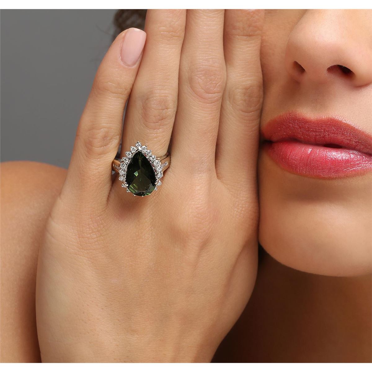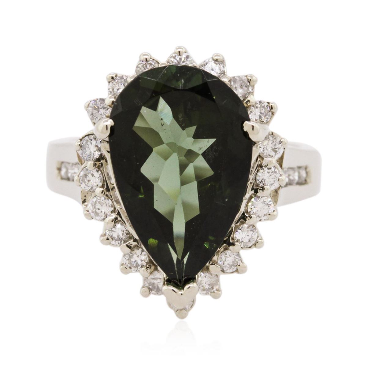 One ring featuring: 14KT white gold weighing 8.35 grams containing one green tourmaline center stone with a total weight of 4.23ct and round diamonds with a total weight of 0.60cts.