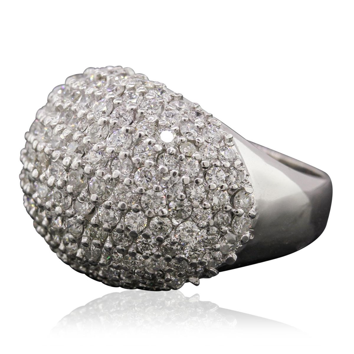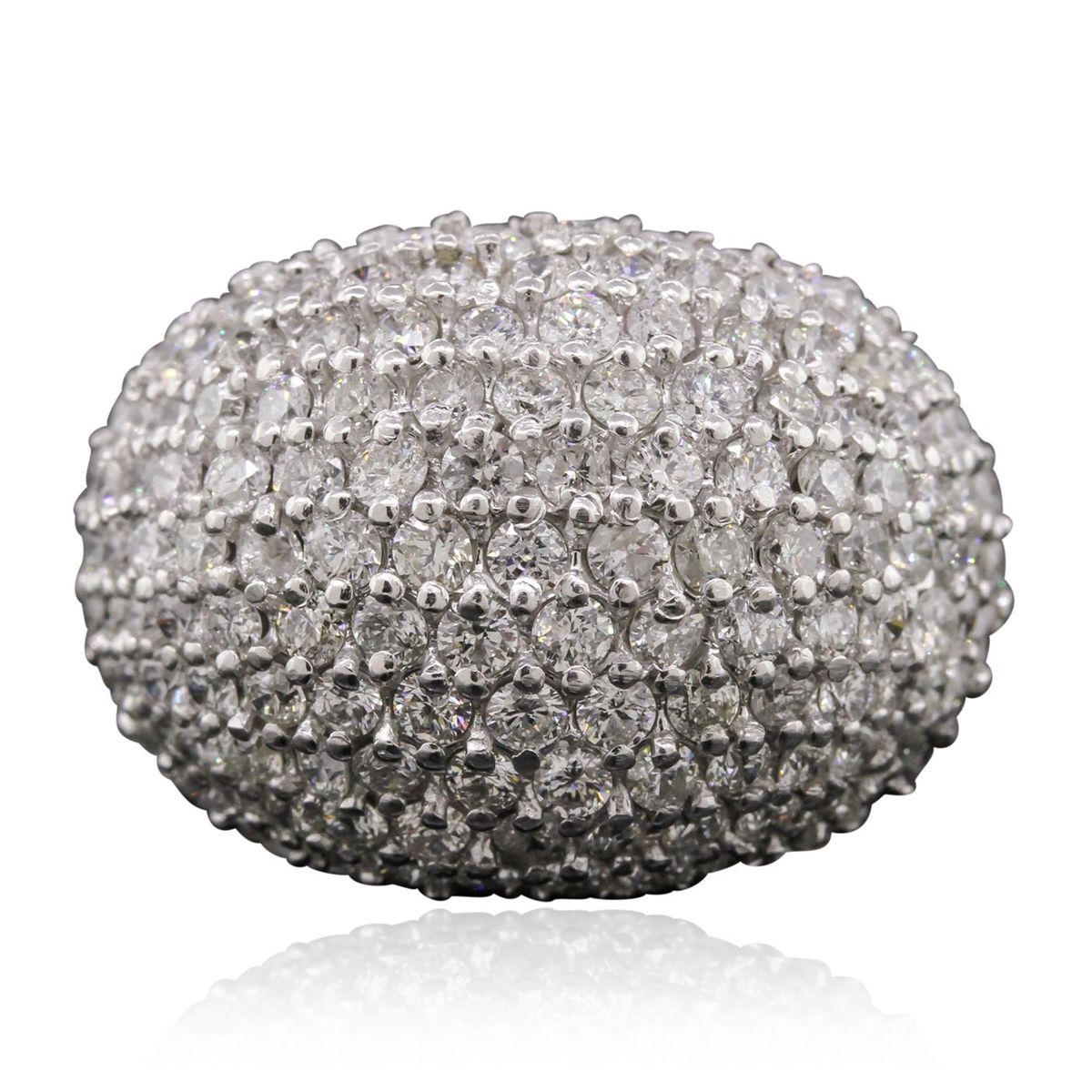 One electronically tested 14KT white gold Ladies combination cast & assembled ring with a bright polish finish. Condition is new. Identified with markings of "14K". Containing: One Hundred Forty-Five prong set round brilliant cut diamonds, measuring 2.00 - 2.00 x 1.20mm (depth est.) approximate. Total Weight of 145 Stones = 4.23ct. Clarity: SI-2 to I-1. Color: H - I, Cut is Good. Total Weight of Diamonds 4.23ct. Total Weight of Ring 16.30 grams. GGL Appraised at $15,735.00.