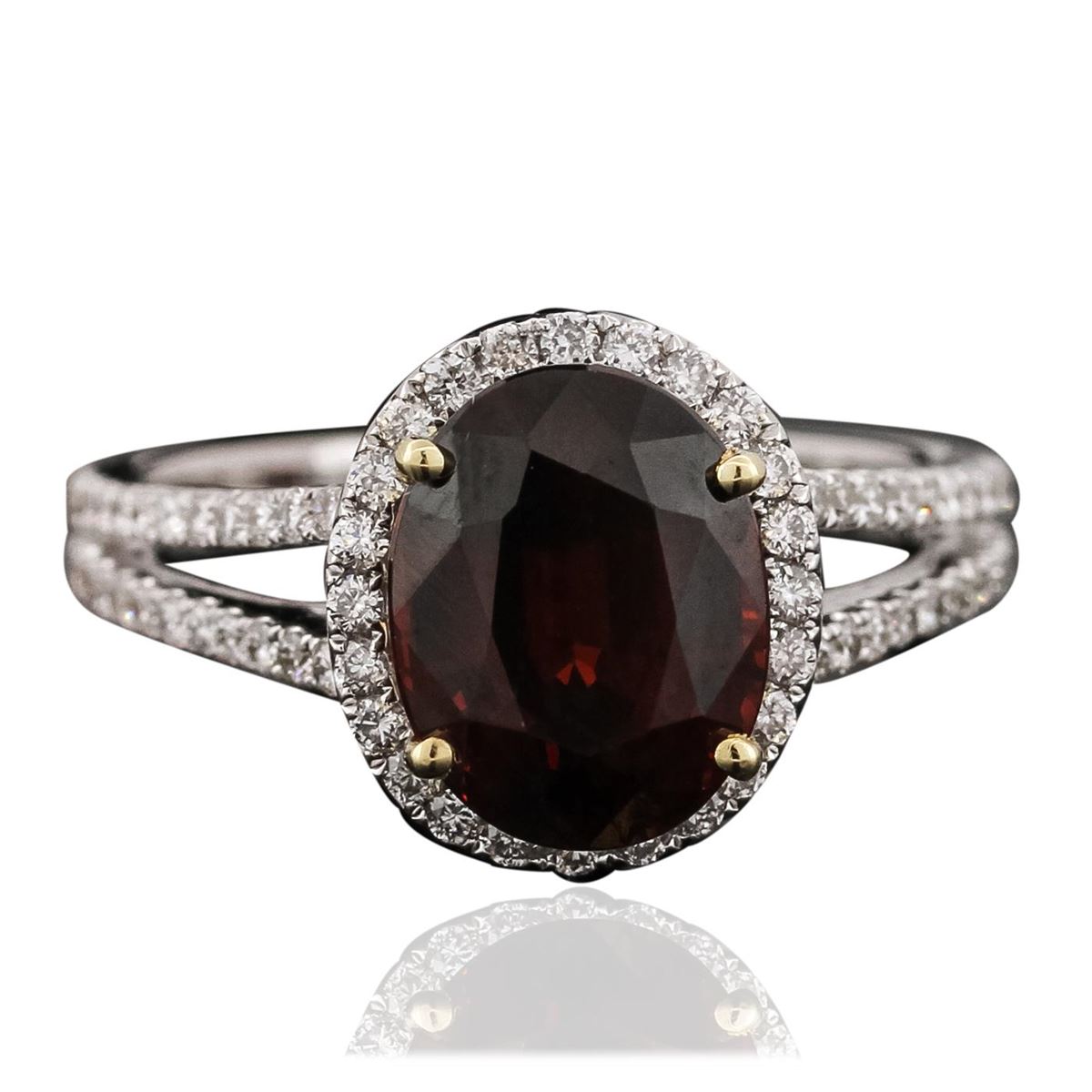 One ring featuring: 4.3 grams of 14KT white gold, garnet with a total weight of 4.30ct, diamonds with a total weight of 0.69cts.