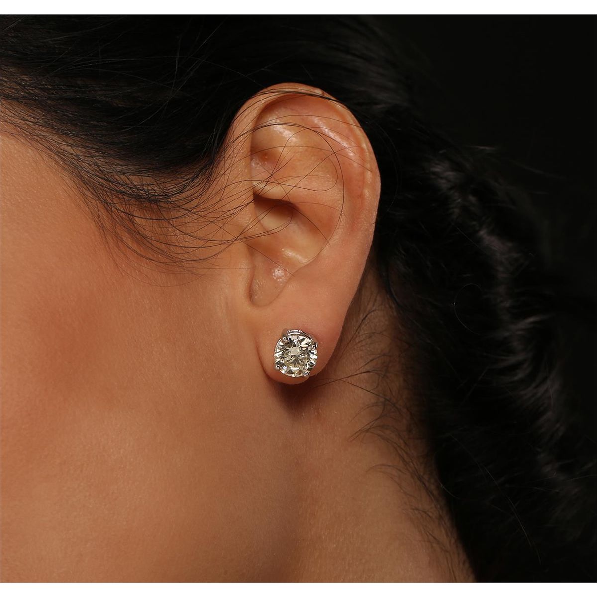 One pair electronically tested 14KT white gold Ladies cast stud earrings with screw backs with a bright polish finish. Condition is new. Identified with markings of "14K". Containing: One prong set round brilliant cut diamond, measuring 8.31 - 8.31 x 5.05mm (depth est.) approximate weight of 2.20ct. Clarity: VS-1. Color: J, Cut is Good. One prong set round brilliant cut diamond, measuring 8.27 - 8.27 x 4.96mm (depth est.) approximate weight of 2.17ct. Clarity: VS-1. Color: K, Cut is Good. EGL USA GEM ID# US 911348442D. All diamonds are graded in the mounting, unless otherwise stated. Total Weight of Diamonds 4.37ct. Total Weight of Earrings 3.20 grams. GGL Appraised at $101,625.00.