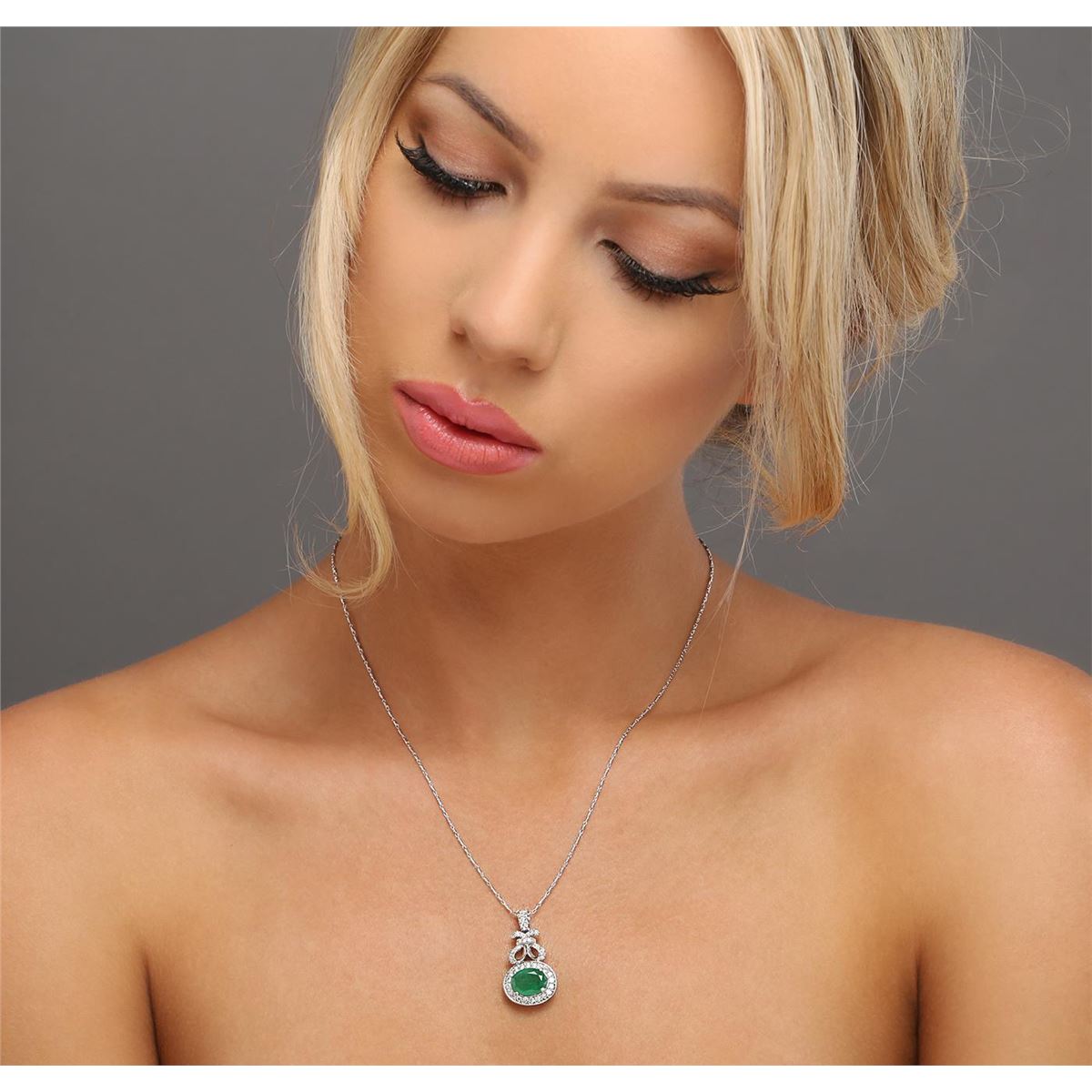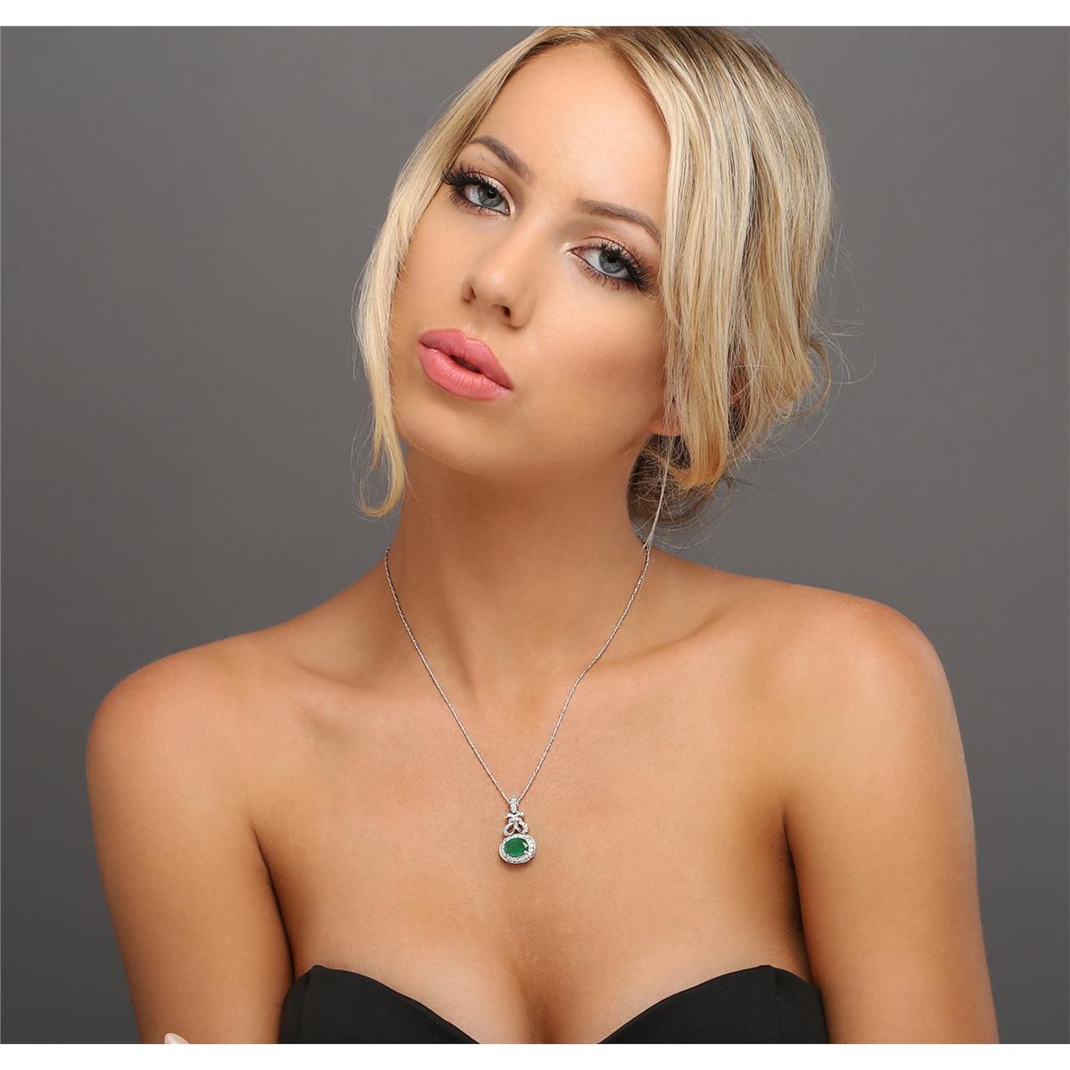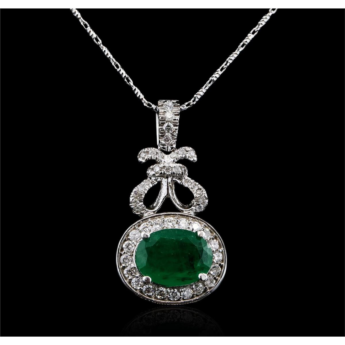 One electronically tested 14KT white gold ladies combination cast & assembled emerald and diamond pendant & chain 18.0" long, fancy link with a lobster claw clasp with a bright polish finish. Identified with markings of "14K". Condition is new. Containing: One prong set oval modified brilliant cut natural emerald, measuring 12.00 x 10.00 x 6.50mm, approximate weight of 4.46ct., clarity is heavily included, type III, medium light, very slightly grayish, green color, (GIA G 4/3), cut is good. Forty-Two prong set round brilliant cut diamonds, measuring 2.00 - 1.30 x 0.99mm (depth est.) approximate total weight of 42 Stones = 0.69ct. Clarity: I-1. Color: I - J, Cut is Good. Colored gemstones are presumed to have been subjected to commonly used enhancement processes. All diamonds and colored gemstones are graded in the mounting, unless otherwise stated. Total Weight of Colored Stones 4.46ct. Total Weight of Diamonds 0.69ct. Total Weight of Pendant & Chain 8.80 grams. GGL Appraised at $6,785.00.