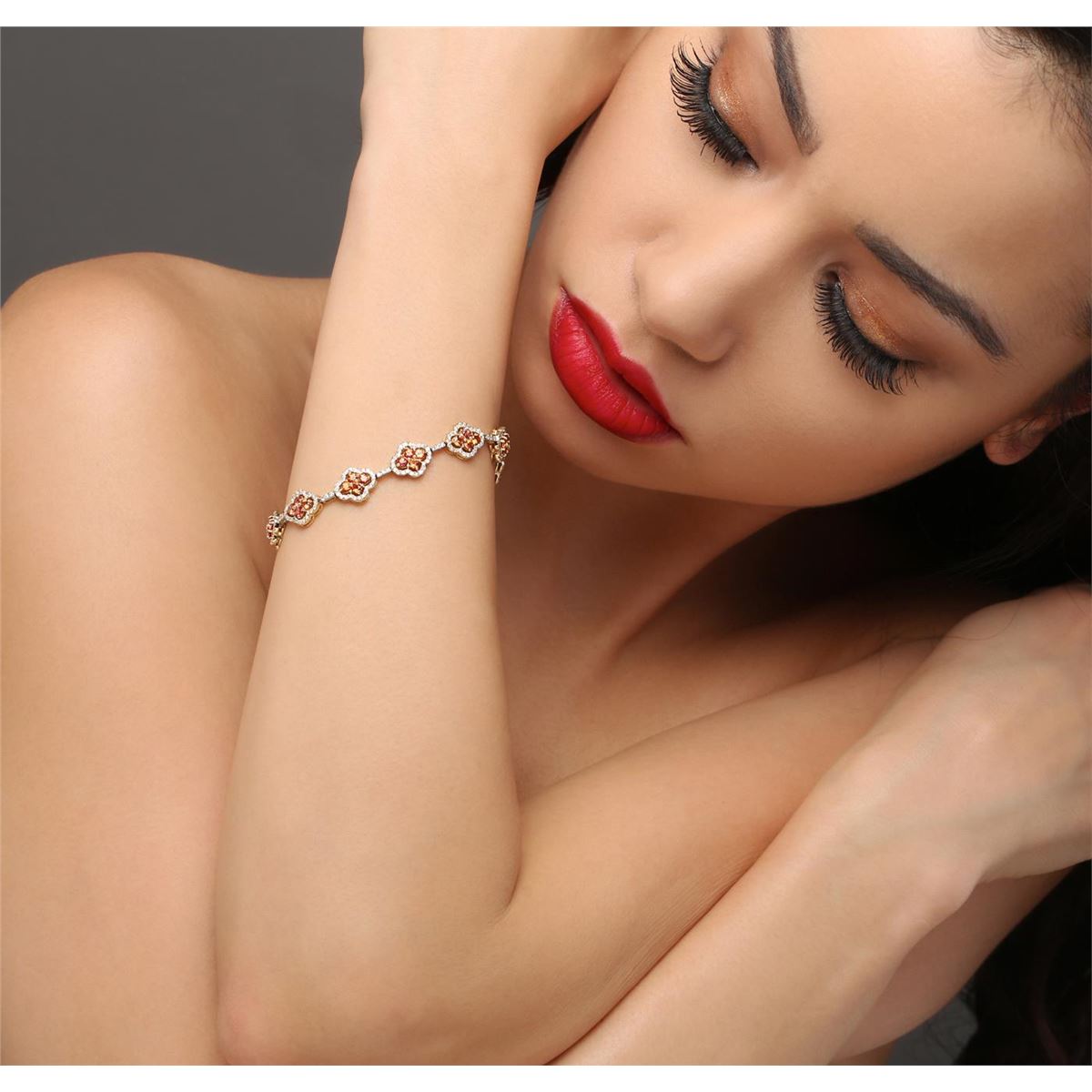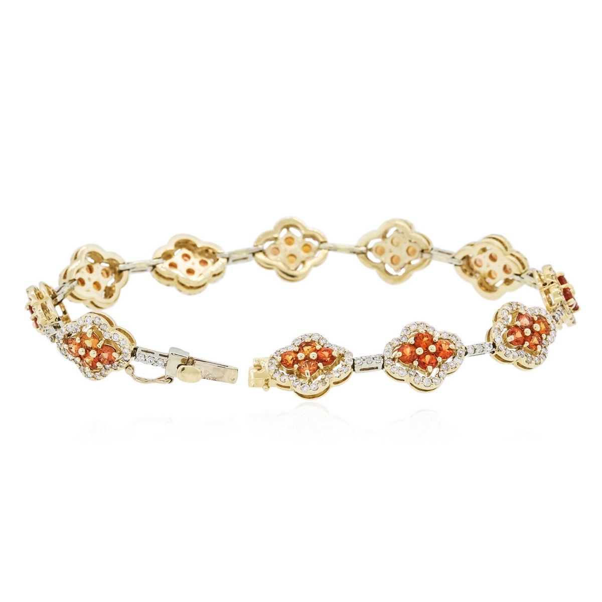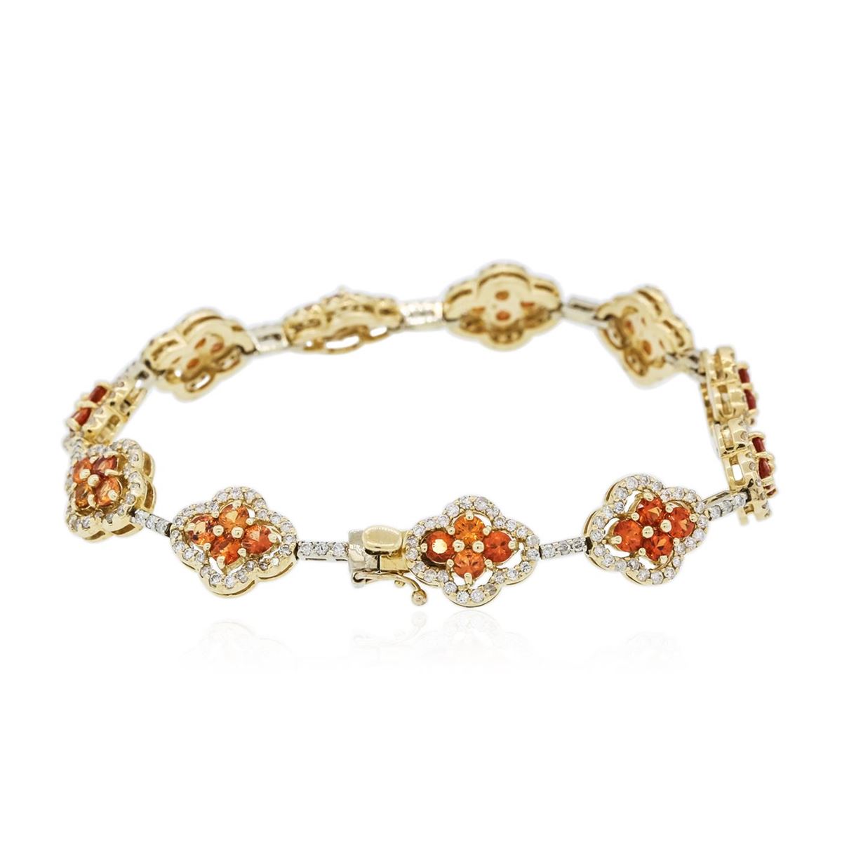 One bracelet featuring: 14KT white gold weighing 15.00 grams containing 44 orange sapphires with a total weight of 4.50ct and round diamonds with a total weight of 1.73ct.