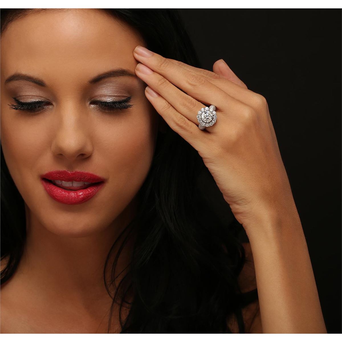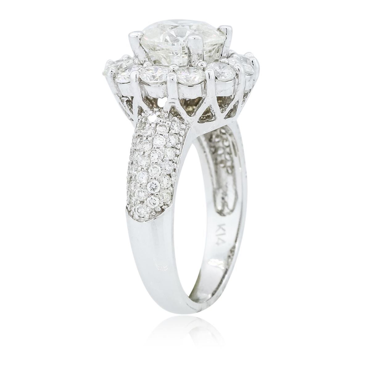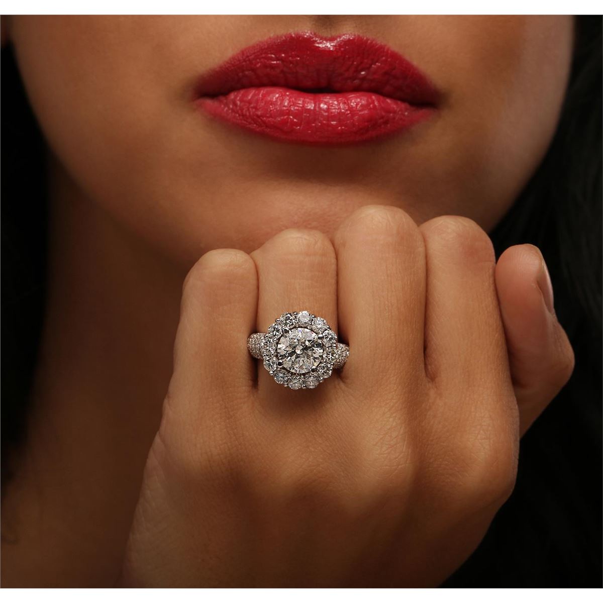 One electronically tested 14KT white gold Ladies combination cast & assembled engagement ring with a bright polish finish. Condition is new. Identified with markings of "14K". Containing: One prong set round brilliant cut diamond, measuring 8.69 - 8.67 x 5.09mm (depth est.) approximate. Total Weight of 2.64ct. Clarity: I-2. Color: G, Cut is Good. Seventy-Four prong set round brilliant cut diamonds, measuring 3.00 - 1.50 x 1.35mm (depth est.) approximate. Total Weight of 74 Stones = 1.98ct. Clarity: SI-1 to SI-3. Color: F - H, Cut is Good. EGL USA GEM ID# US 911348431D. All diamonds are graded in the mounting, unless otherwise stated. Total Weight of Diamonds 4.62ct. Total Weight of Engagement Ring 7.70 grams. GGL Appraised at $41,915.00.