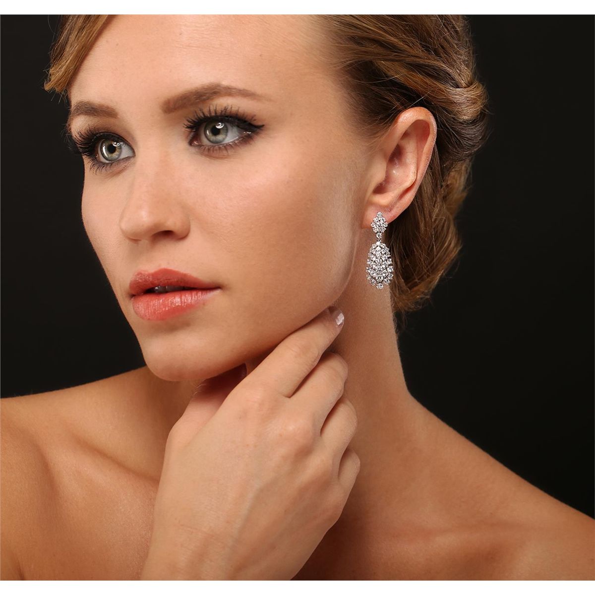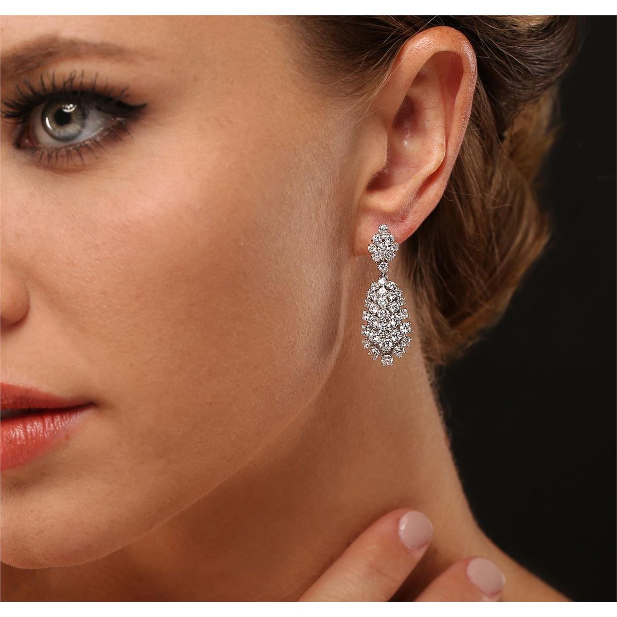 One pair electronically tested 14KT white gold Ladies combination cast & die struck dangle earrings with hinged clip backs with a bright polish finish. Identified with markings of "14K". Condition is excellent. Containing: Seventy-Six prong set round brilliant cut diamonds, measuring 3.10 - 2.10 x 1.56mm (depth est.) approximate total weight of 76 Stones = 4.88ct. Clarity of SI-1 to SI-2, Color of H - I, Cut is Good. Total Weight of Diamonds 4.88ct. Total Weight of Earrings 10.80gm. GGL Appraised at $15,535.00.