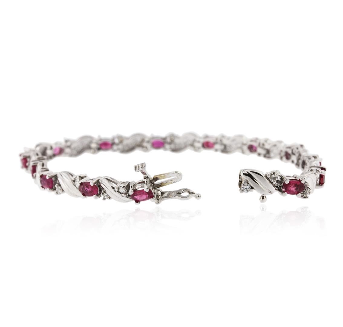 One bracelet featuring: 14KT white gold weighing 13.90 grams containing rubies with a total weight of 4.92ct and diamonds with a total weight of 0.87ct.