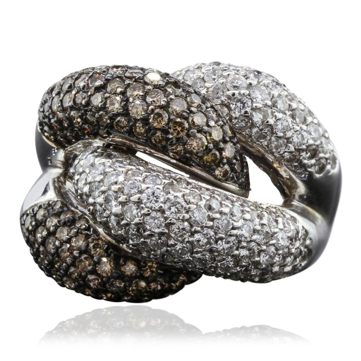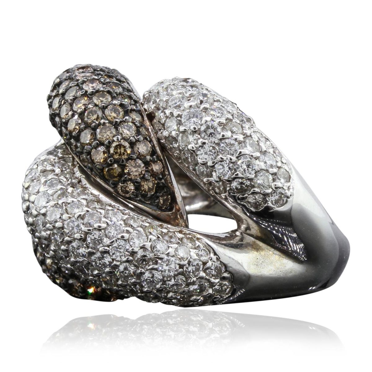 One electronically tested 14KT white gold Ladies combination cast & assembled fashion ring with a bright polish finish. Identified with markings of "14K". Condition is new. Containing: One Hundred Twenty-Seven bead set round brilliant cut diamonds, measuring 2.00 - 1.50 x 1.05mm (depth est.) approximate total weight of 127 Stones = 2.49ct. Clarity of SI-1 to SI-2, Cut is Good. One Hundred Twenty-Seven bead set round brilliant cut diamonds, measuring 2.00 - 1.50 x 1.05mm (depth est.) approximate total weight of 127 Stones = 2.49ct. Clarity of SI-1 to I-1, Color of H - I, Cut is Good. Total Weight of Diamonds 4.98ct. Total Weight of Ring 18.40gm. GGL Appraised at $18,560.00.