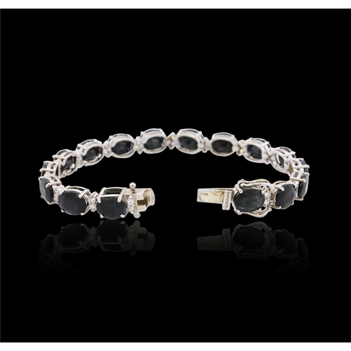 One bracelet featuring: 14KT white gold weighing 13.00 grams containing 16 sapphires with a total weight of 40.00cts and round cut diamonds with a total weight of 0.95cts.