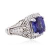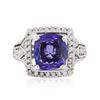 One electronically tested 14KT white gold ladies combination cast & assembled tanzanite and diamond ring with a bright polish finish. Identified with markings of "14K". Condition is new. Containing: One prong set square cushion modified brilliant cut natural tanzanite, measuring 10.00 x 10.00 x 6.50mm, approximate weight of 5.12ct., clarity is eye clean, type I, medium, moderately strong, violet color, (GIA V 5/4), cut is very good. Sixty-Six prong set round brilliant cut diamonds, measuring 2.00 - 1.30 x 0.99mm (depth est.) approximate total weight of 66 Stones = 0.80ct. Clarity: SI-1 to I-1. Color: I - J, Cut is Good. Colored gemstones are presumed to have been subjected to commonly used enhancement processes. All diamonds and colored gemstones are graded in the mounting, unless otherwise stated. Total Weight of Colored Stones 5.12ct. Total Weight of Diamonds 0.80ct. Total Weight of Ring 8.20 grams. GGL Appraised at $8,815.00.