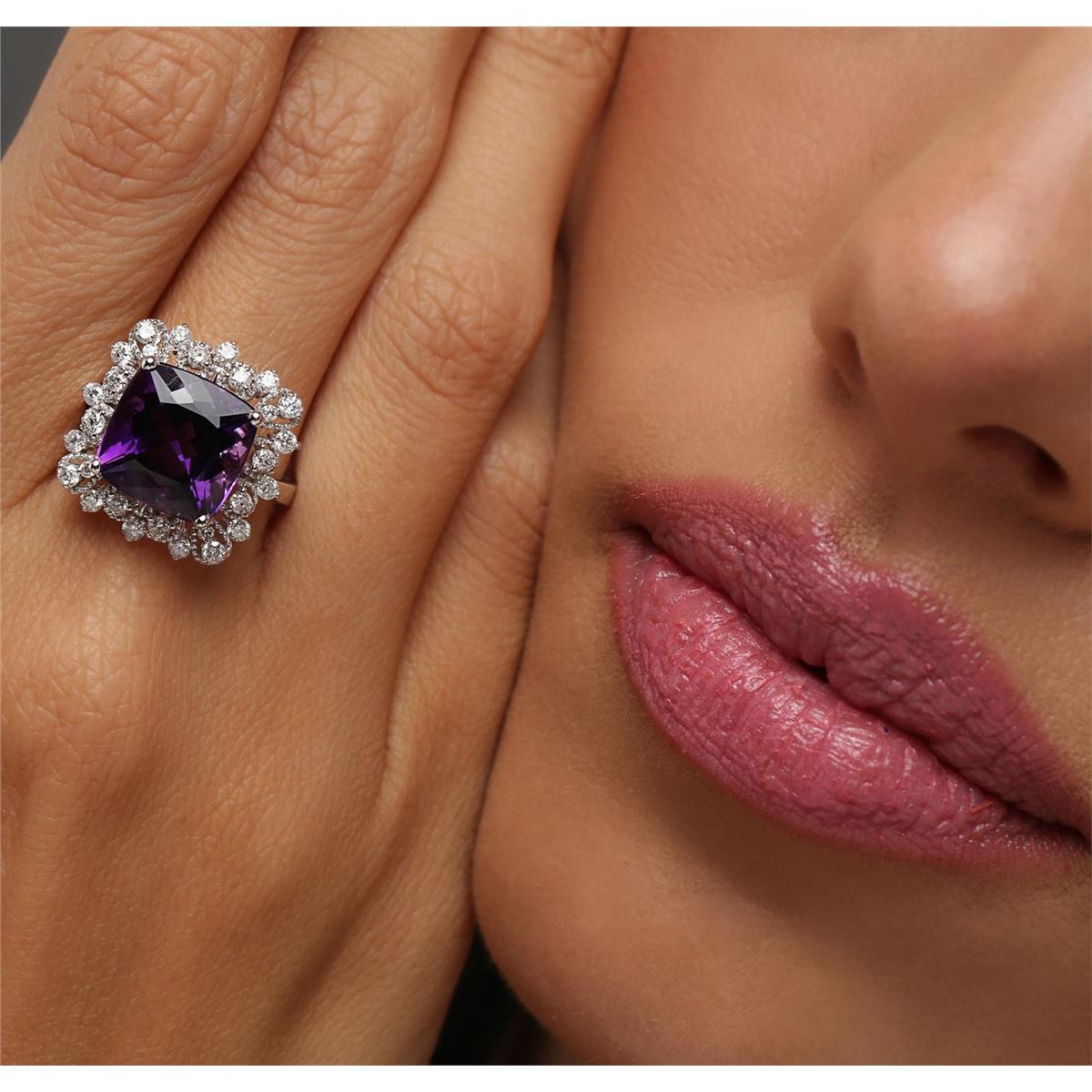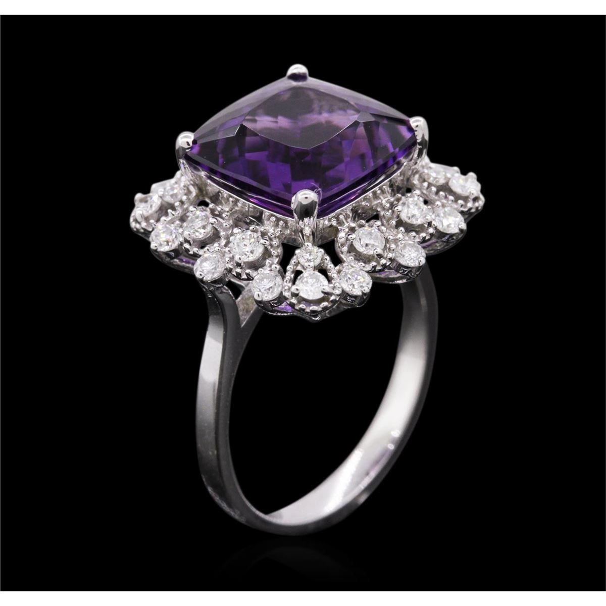 One ring featuring: 14KT white gold weighing 5.07 grams containing one amethyst center stone with a total weight of 5.31ct and diamonds with a total weight of 0.81cts.