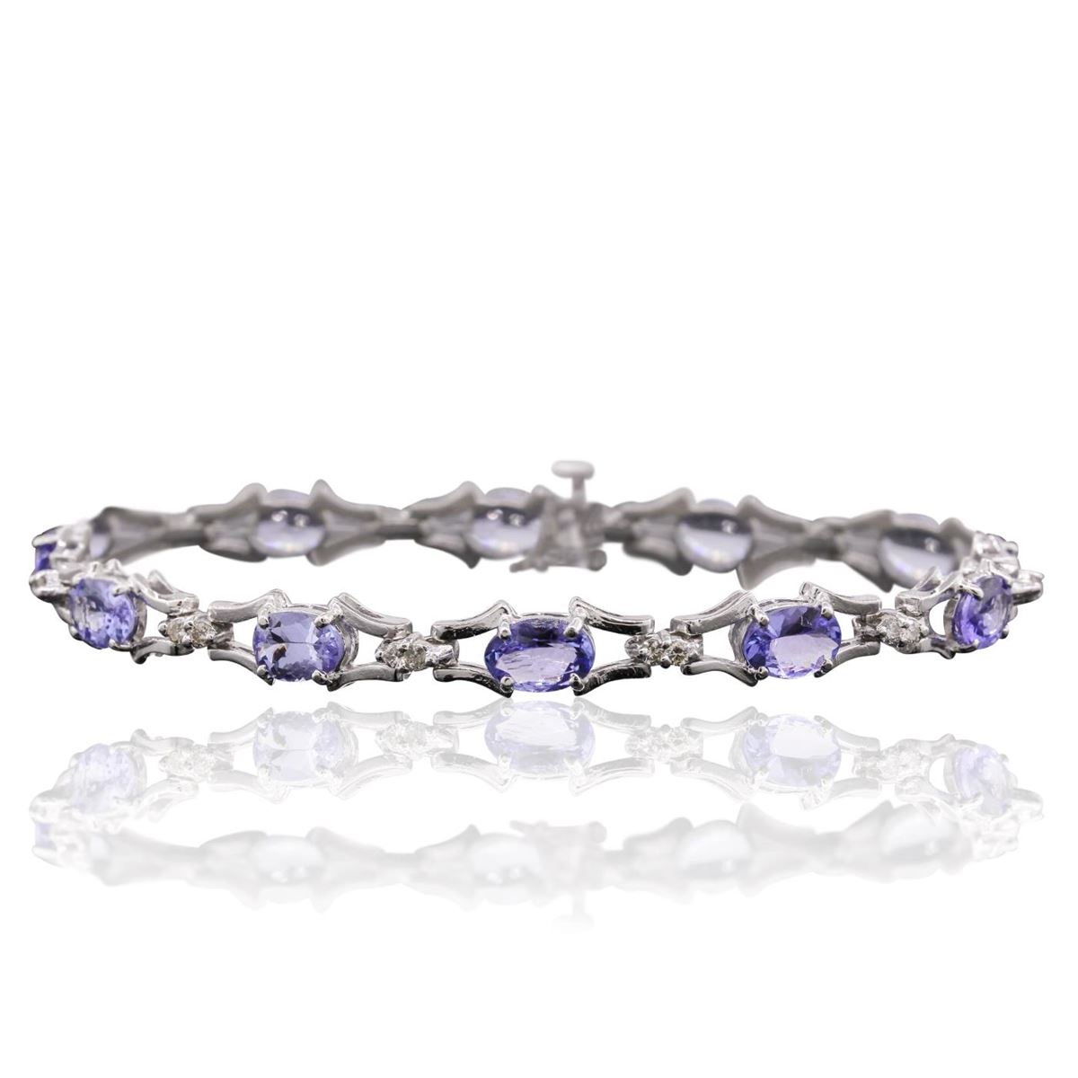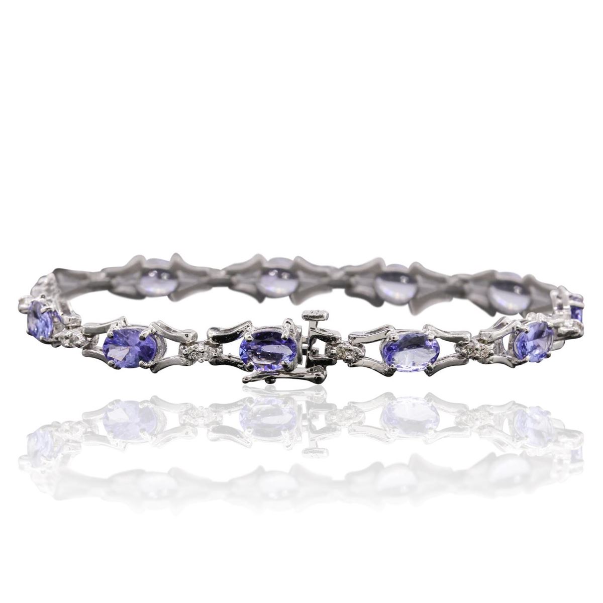 One bracelet featuring: 14KT White Gold with a total weight of 12.37 grams, tanzanites with a total weight of 5.55cts and Diamonds with a total weight of 0.52ctw.