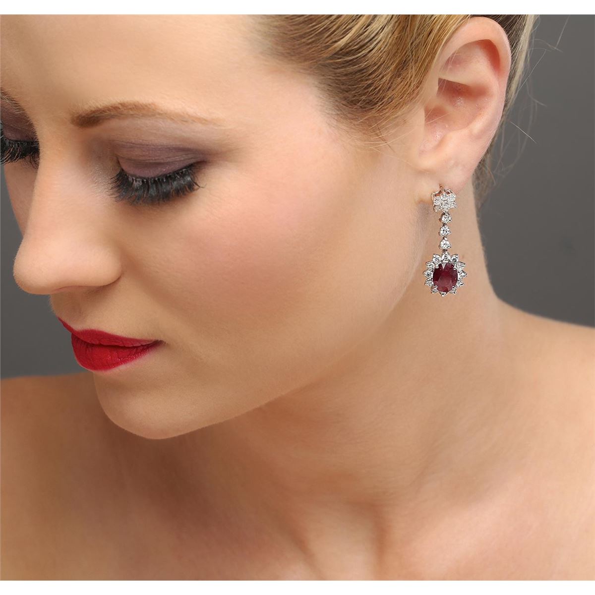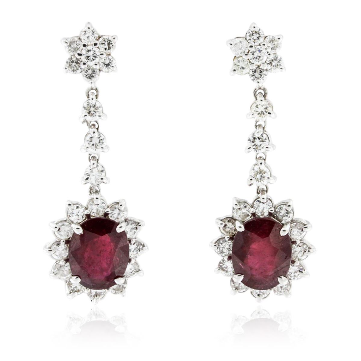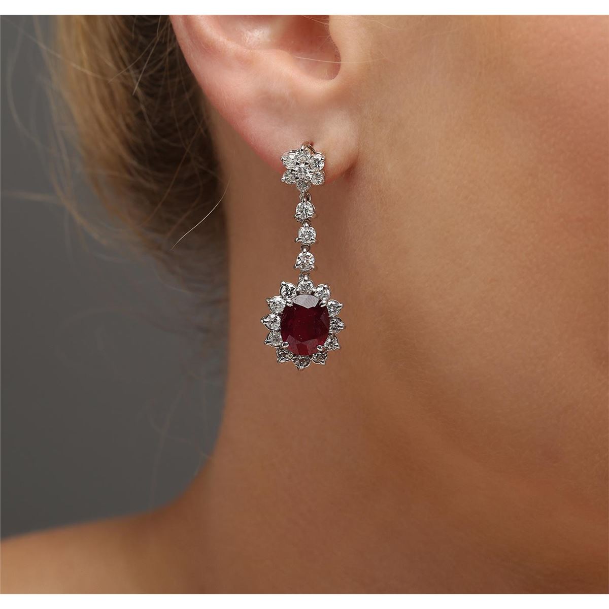 One pair of earrings featuring: 14KT white gold weighing 8.00 grams containing two rubies with a total weight of 5.56ct and round diamonds with a total weight of 4.20ct.
