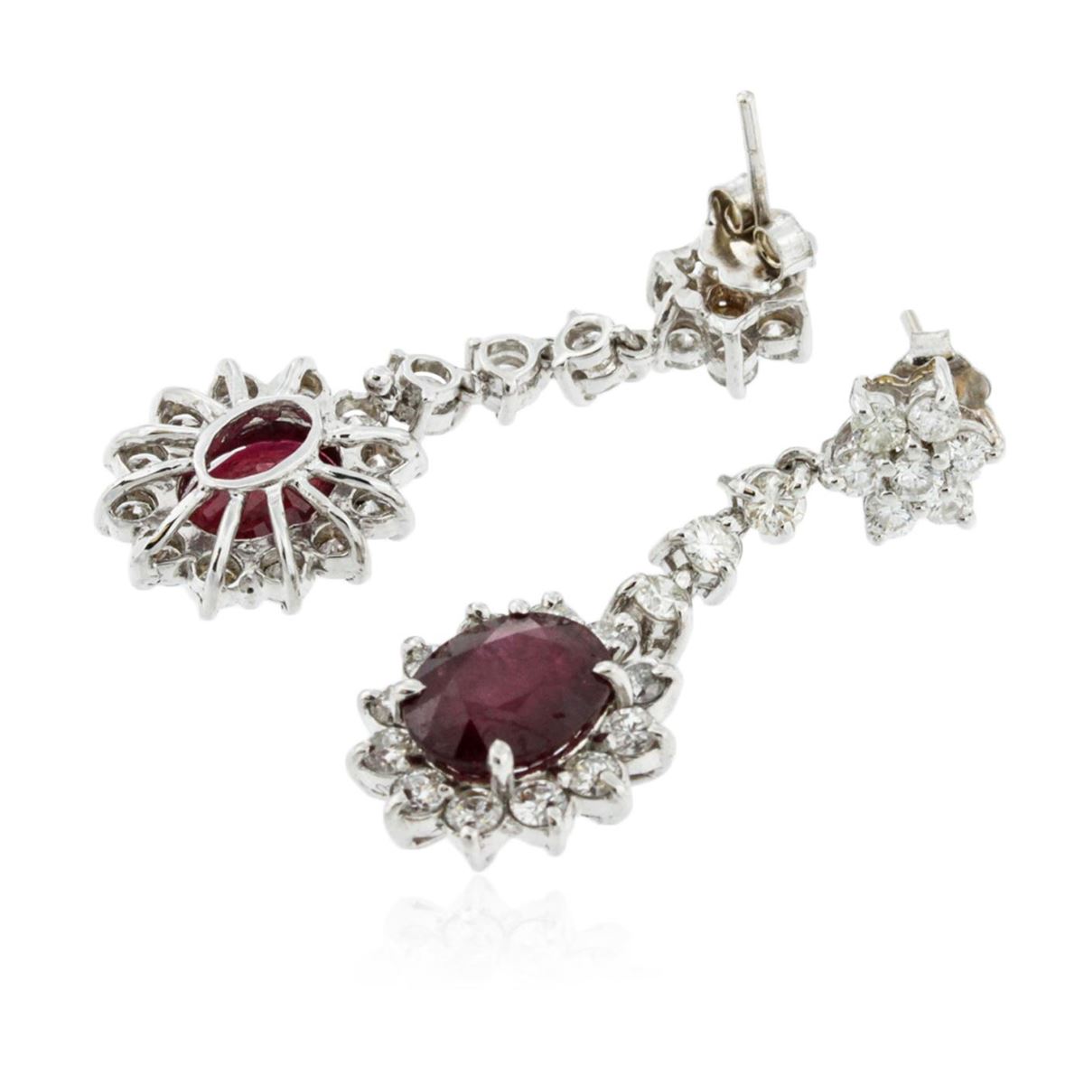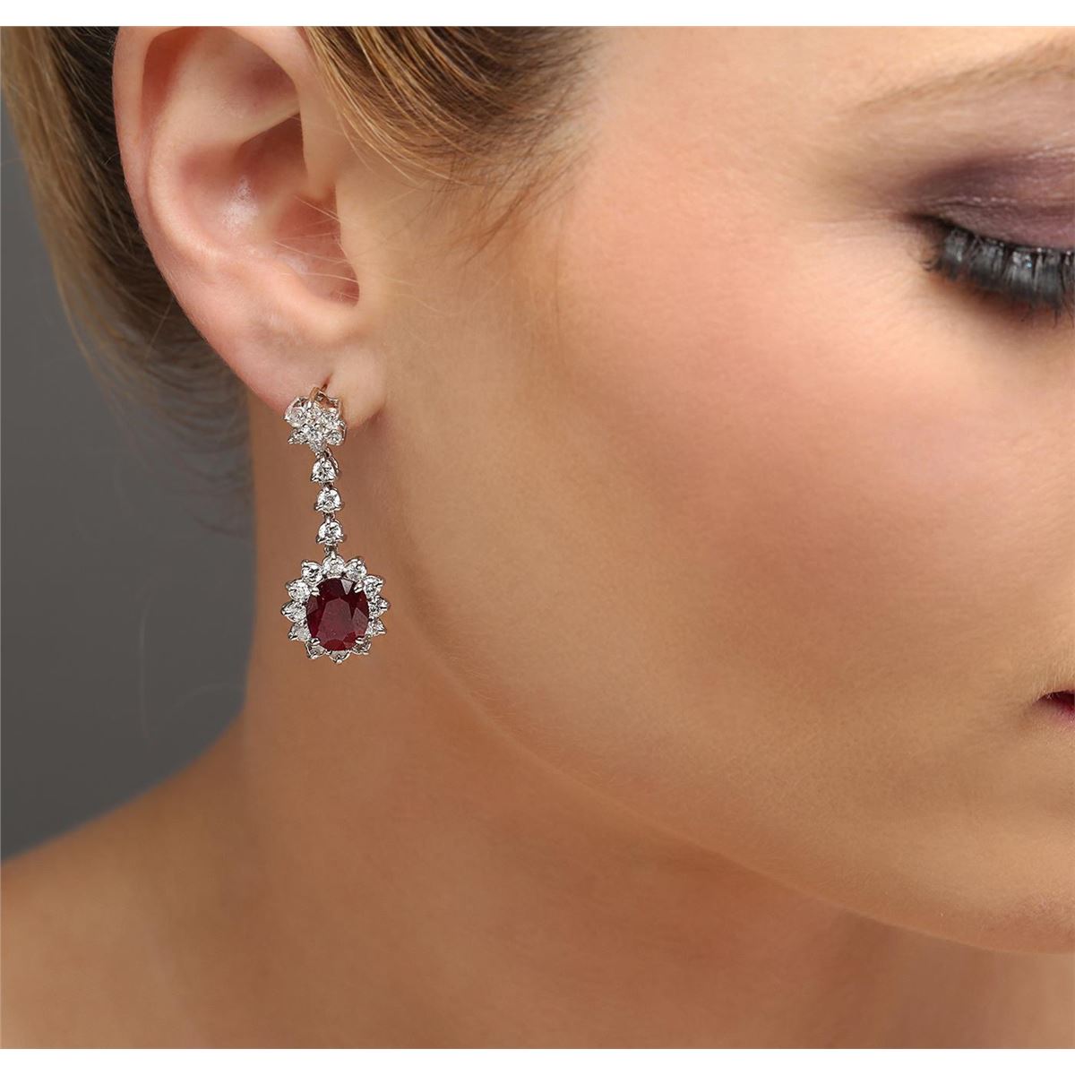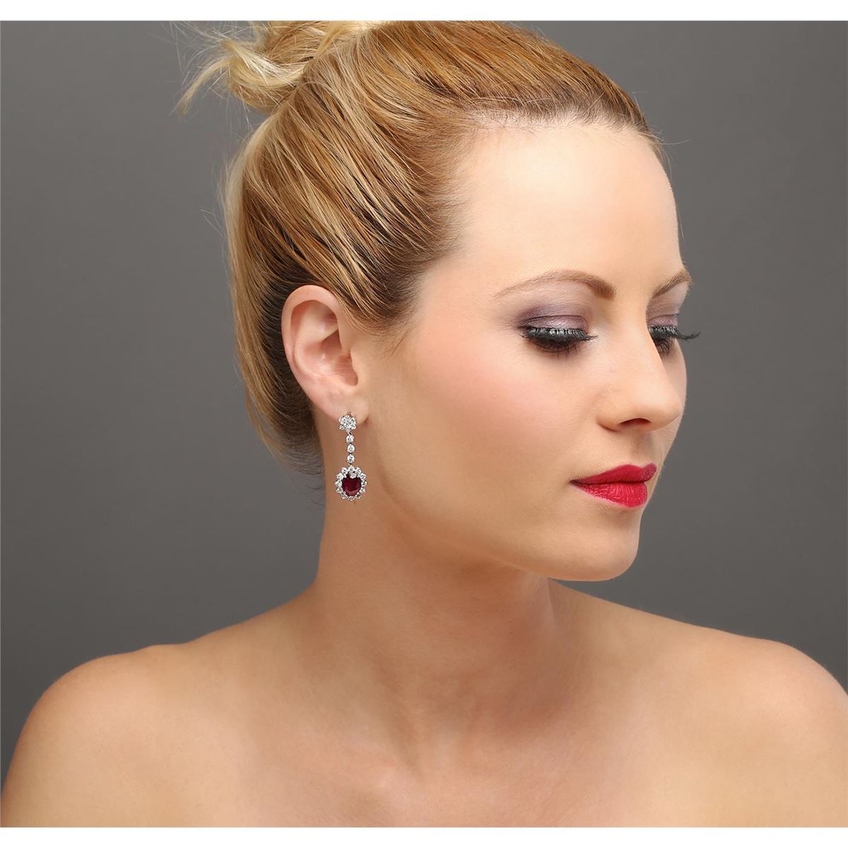 One pair of earrings featuring: 14KT white gold weighing 8.00 grams containing two rubies with a total weight of 5.56ct and round diamonds with a total weight of 4.20ct.