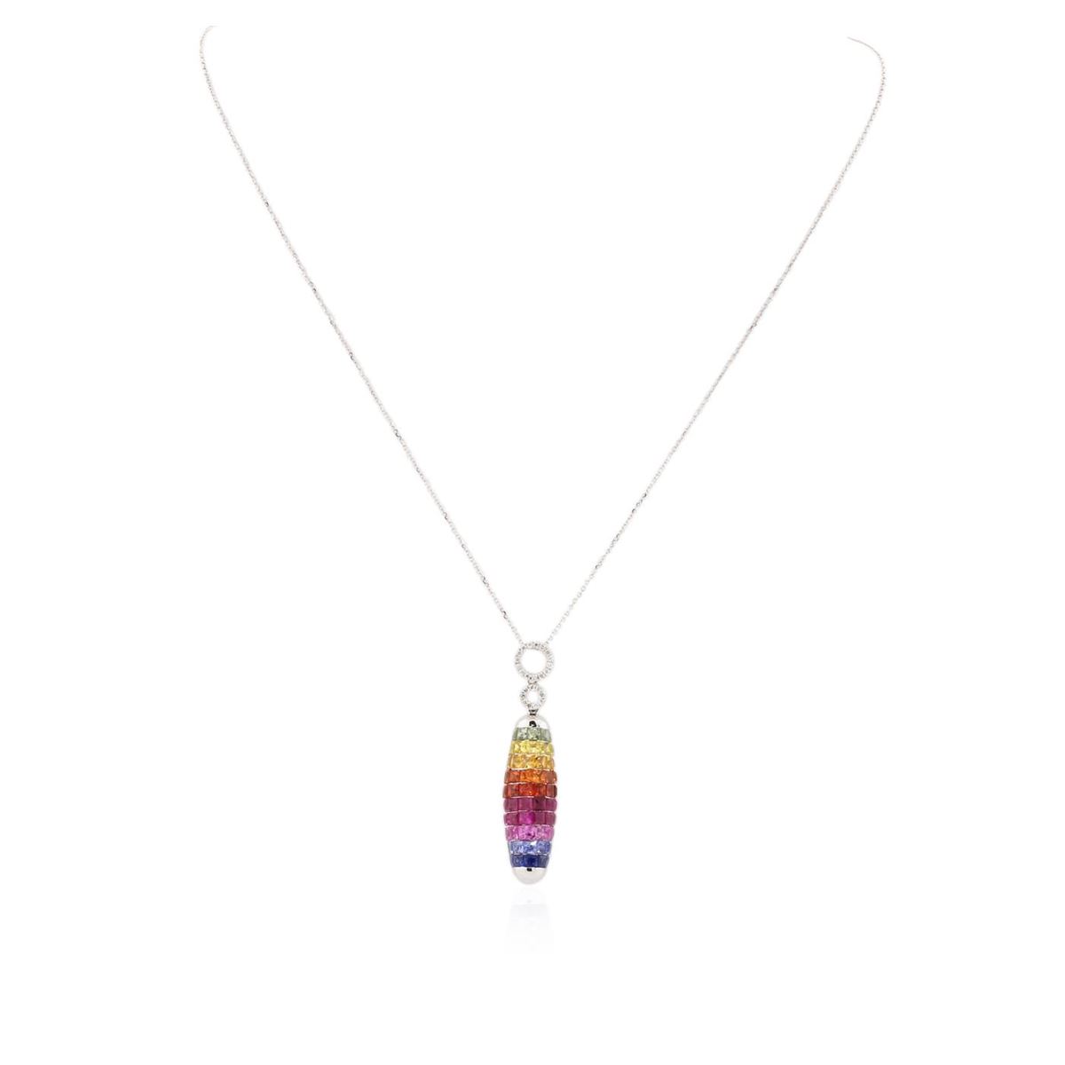 One pendant with chain featuring: 14KT white gold weighing 4.10 grams containing multicolor sapphires with a total weight of 5.58ct and diamonds with a total weight of 0.10ct.