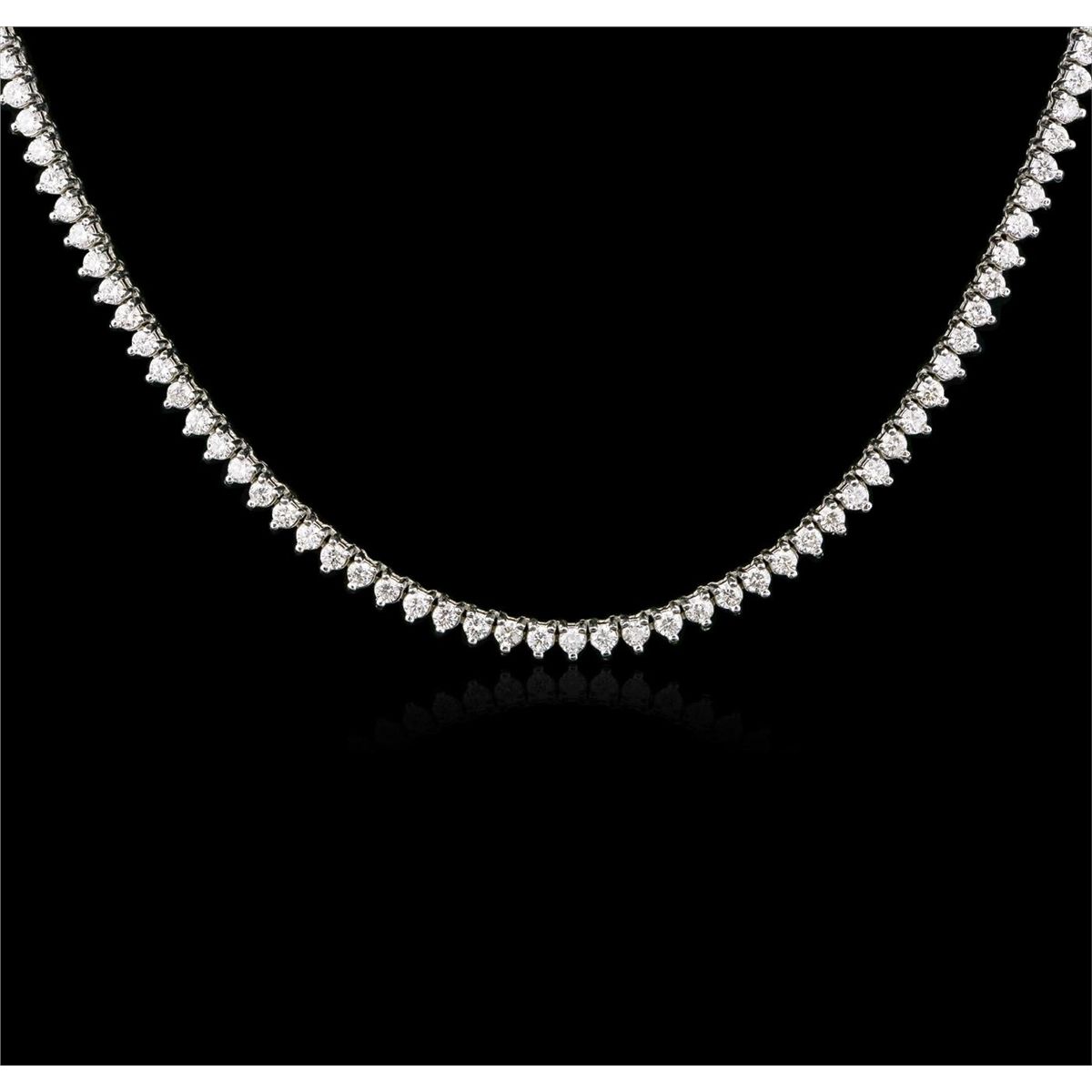 One electronically tested 14KT white gold ladies combination cast & assembled diamond necklace with a hidden box clasp with safety closer with a bright polish finish. Measurements: 20 in length. Identified with markings of 14K. Condition is new. Containing: One Hundred Ninety-Four prong set round brilliant cut diamonds, measuring 2.00 - 2.00 x 1.20mm (depth est.) approximate total weight of 194 Stones = 5.67ct. Clarity: SI-2 to I-1. Color: H - I, Cut is Good. All diamonds are graded in the mounting, unless otherwise stated. Total Weight of Diamonds 5.67ct. Total Weight of Necklace 24.90 grams. GGL Appraised at $16,070.00.