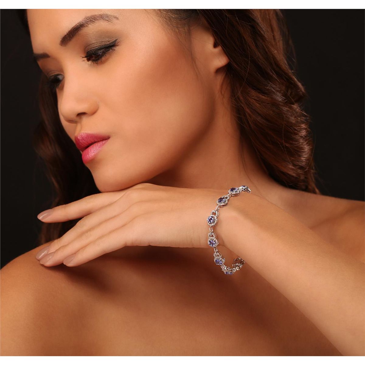 One electronically tested 14KT white gold Ladies combination cast & assembled bracelet with a hidden box clasp with a bright polish finish. Condition is new. Measurements: 7" in length. Identified with markings of "14K". Containing: Eleven prong set round modified brilliant cut natural tanzanites, measuring 5.00 - 5.00 x 3.25 mm, approximate. Total Weight of 5.94ct., clarity is eye clean, type I, medium light, very slightly grayish, violet color, (GIA V 4/3), cut is very good. Colored gemstones are presumed to have been subjected to commonly used color/clarity enhancement processes. Three Hundred Nineteen prong set round brilliant cut diamonds, measuring 1.10 - 1.10 x 0.66mm (depth est.) approximate. Total Weight of 319 Stones = 1.53ct. Clarity: I-1 to I-2. Color: I - J, Cut is Good. Total Weight of Colored Stones 5.94ct. Total Weight of Diamonds 1.53ct. Total Weight of Bracelet 12.80 Grams. GGL Appraised at $17,380.00.