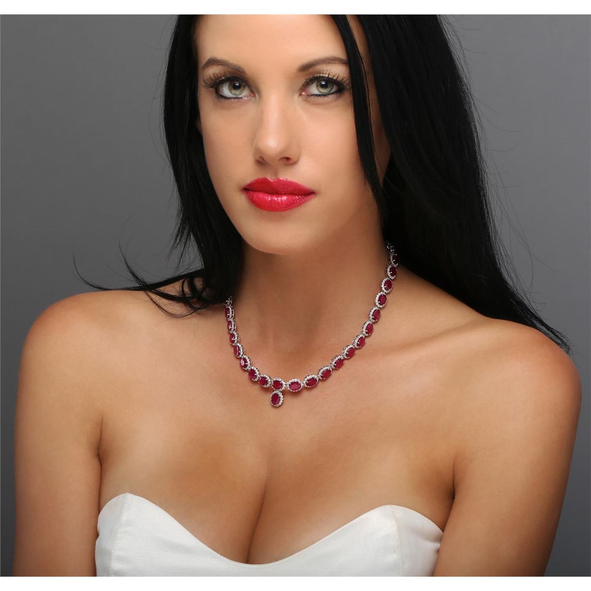 One necklace featuring: 14KT white gold weighing 34.00 grams containing 38 rubies with a total weight of 56.00cts and round cut diamonds with a total weight of 10.92cts.