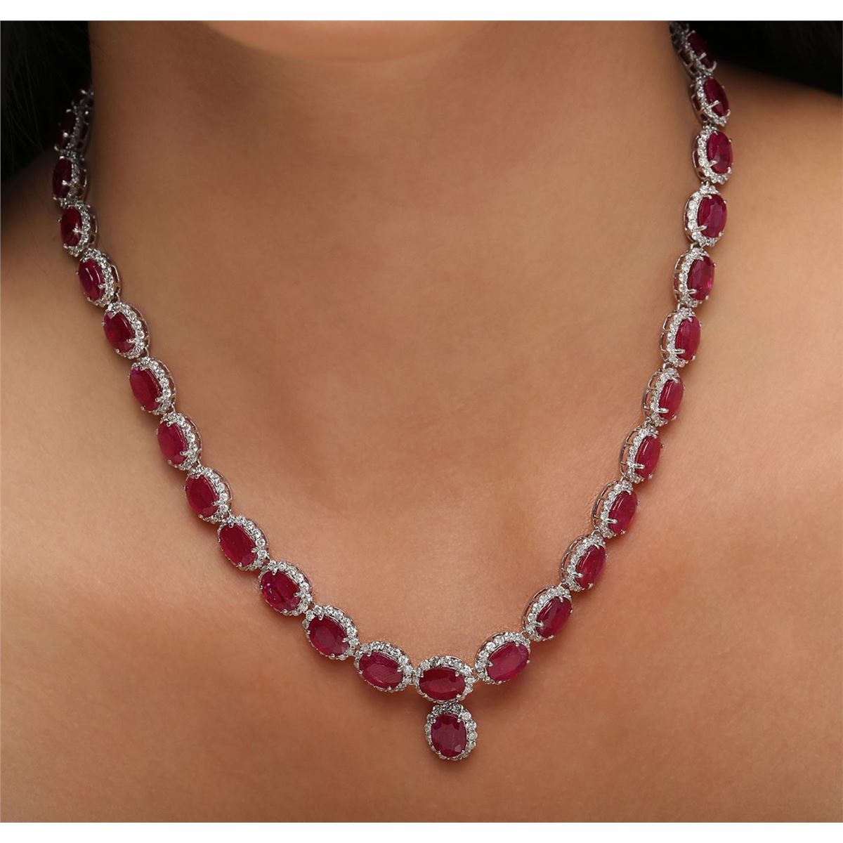 One necklace featuring: 14KT white gold weighing 34.00 grams containing 38 rubies with a total weight of 56.00cts and round cut diamonds with a total weight of 10.92cts.
