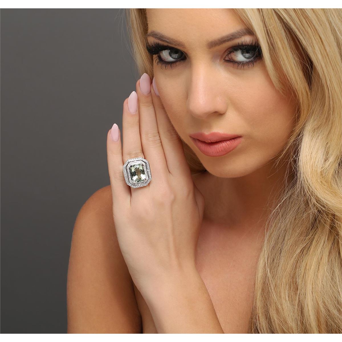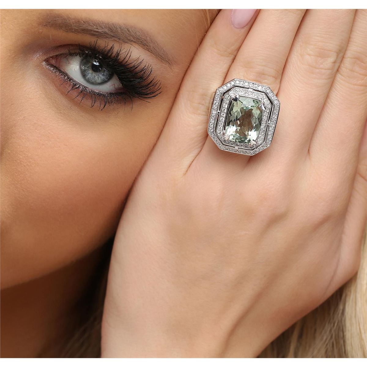 One ring featuring: 14KT white gold weighing 17.20 grams containing one green amethyst center stone with a total weight of 6.00ct and round cut diamonds with a total weight of 1.00cts.