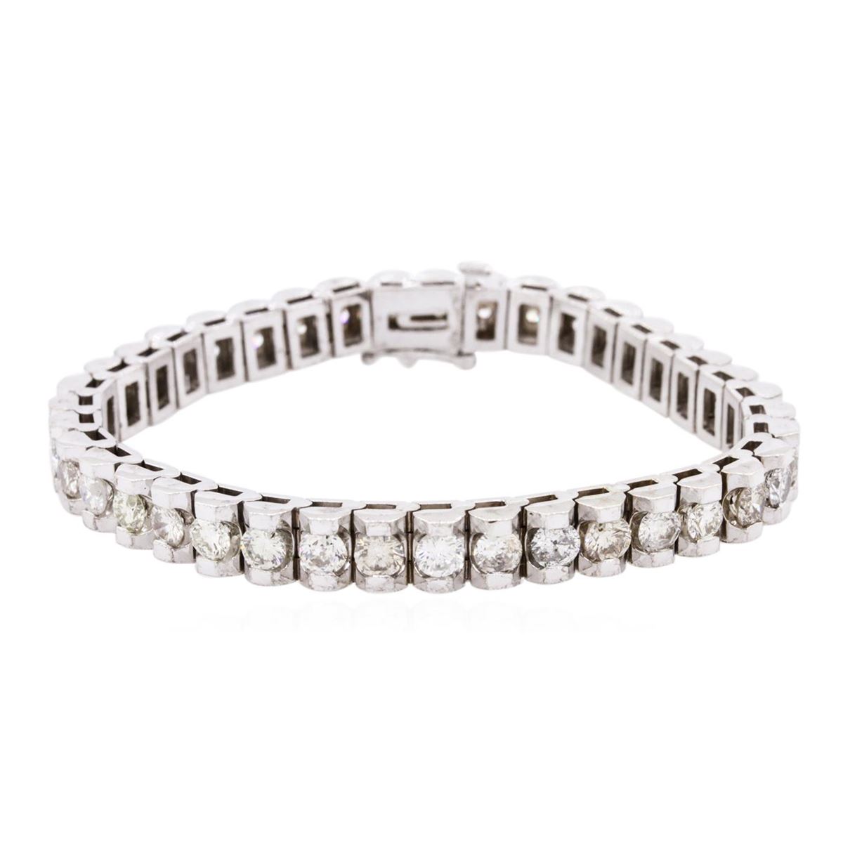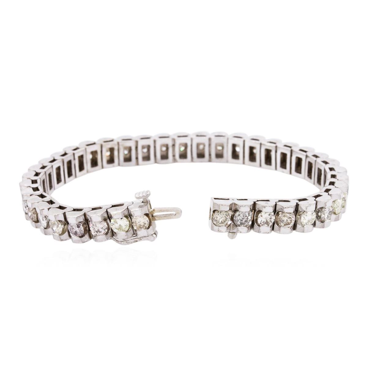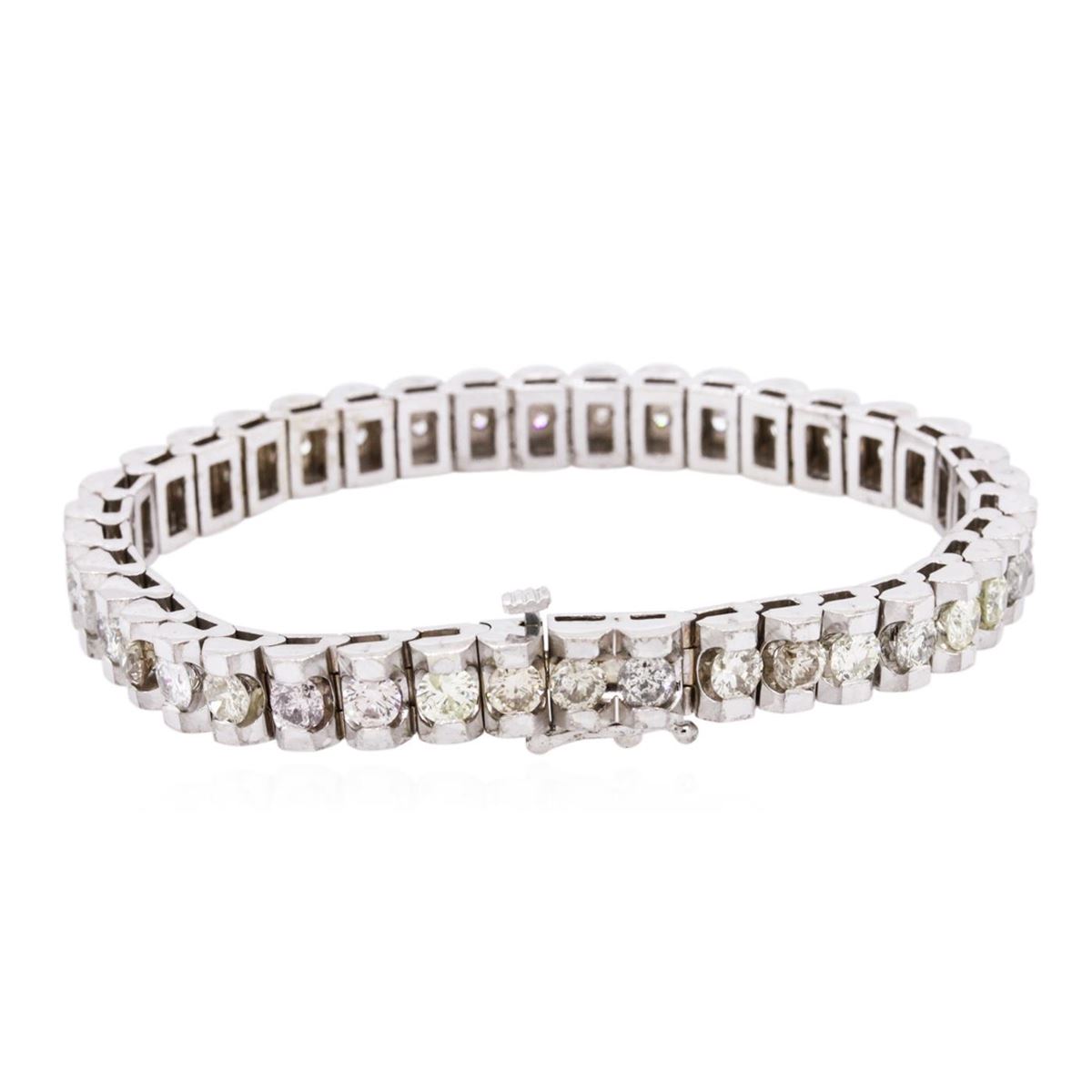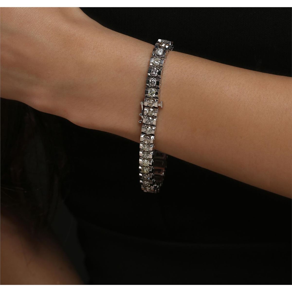 One electronically tested 14KT white gold ladies combination cast & assembled tennis bracelet with a hidden box clasp with a bright polish finish. Measurements: 7" in length. Identified with markings of "14K". Condition is new. Containing: Thirty-Nine prong set round brilliant cut diamonds, measuring 4.00 - 3.00 x 2.10mm (depth est.) approximate total weight of 39 Stones = 6.12ct. Clarity: SI-1 to I-2. Color: I - L, Cut is Good. All diamonds are graded in the mounting, unless otherwise stated. Total Weight of Diamonds 6.12ct. Total Weight of Bracelet 40.70 grams. GGL Appraised at $19,945.00.