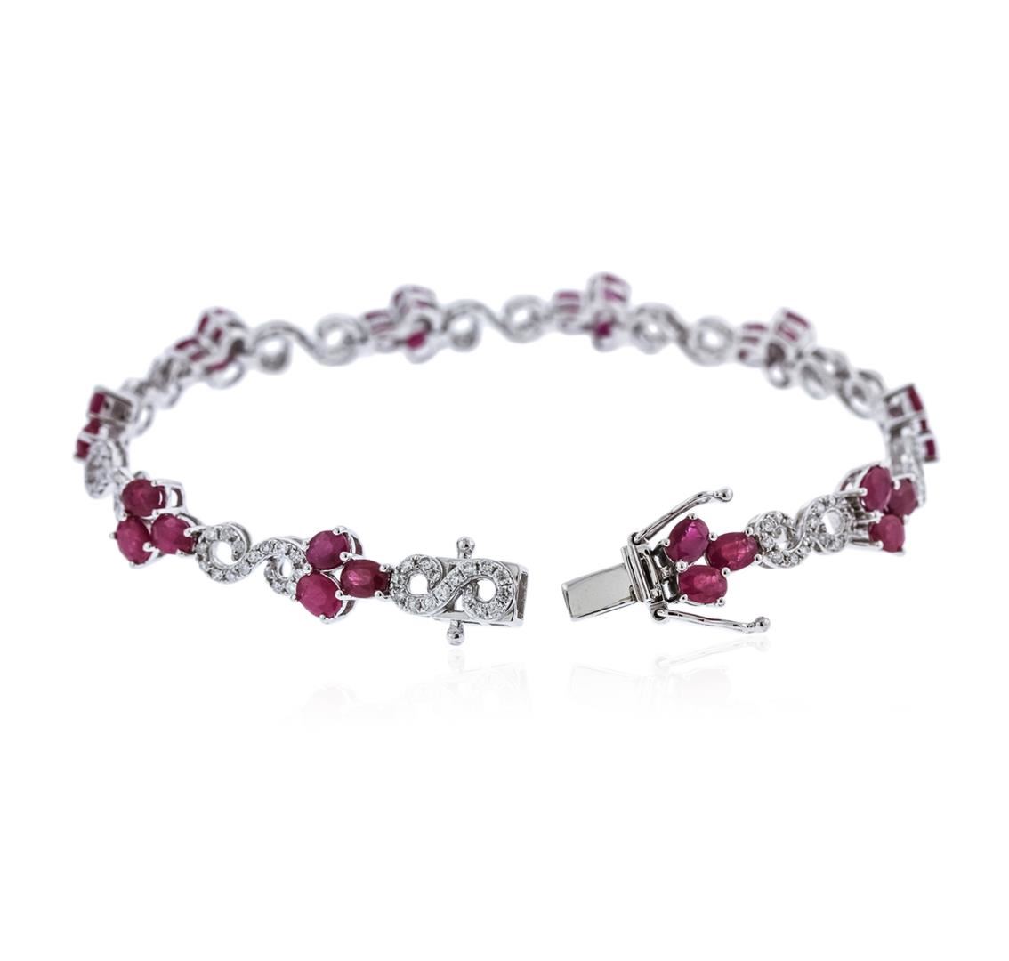 One bracelet featuring: 14KT white gold weighing 10.05 grams containing rubies weighing a total of 6.15 carats and diamonds weighing a total of 1.04 carats.