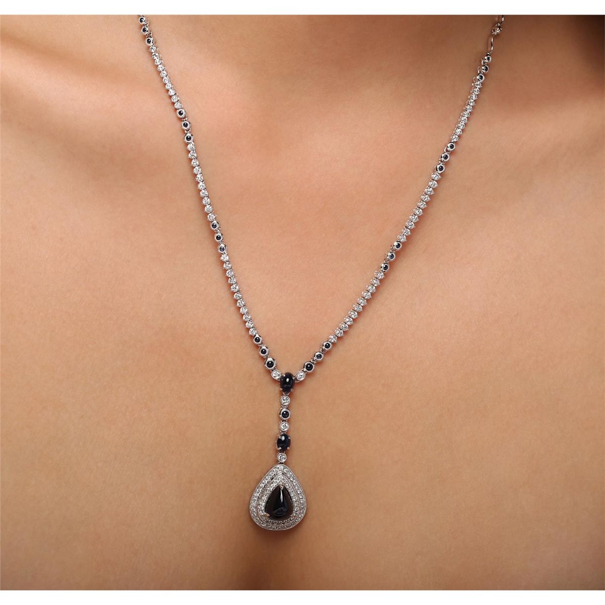 One necklace featuring: 14KT white gold weighing 15.80 grams containing 28 sapphires with a total weight of 6.20cts and 124 round diamonds with a total weight of 2.32cts.