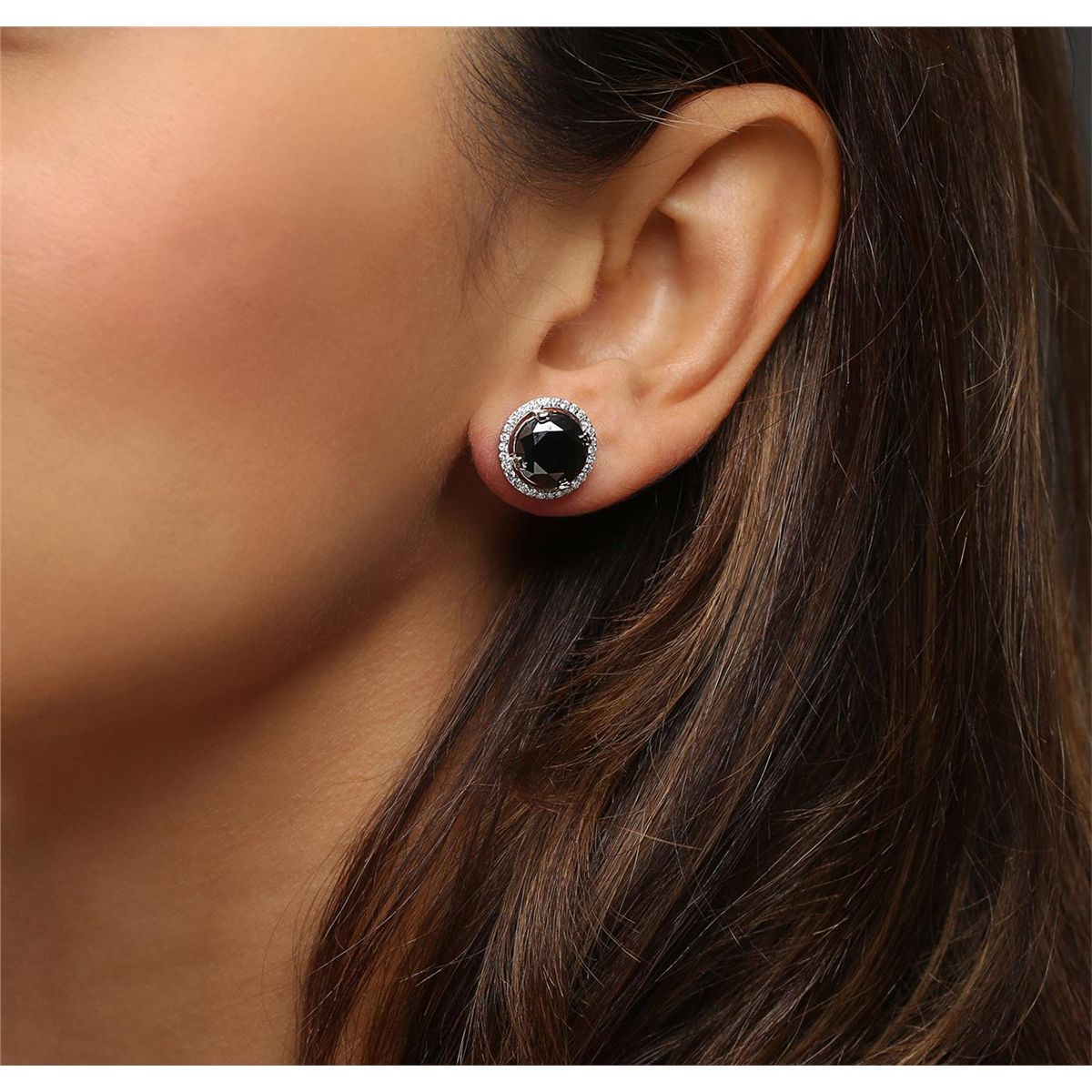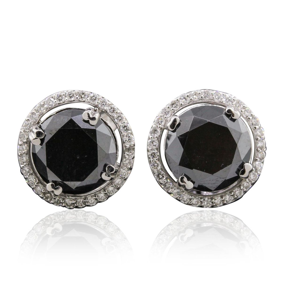 One pair of earrings featuring: 14KT white gold with a total weight of 5.20 grams, black diamond with a total weight of 6.27ctw, and diamonds with a total weight of 0.49ctw.