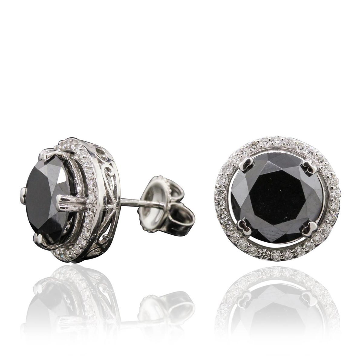 One pair of earrings featuring: 14KT white gold with a total weight of 5.20 grams, black diamond with a total weight of 6.27ctw, and diamonds with a total weight of 0.49ctw.